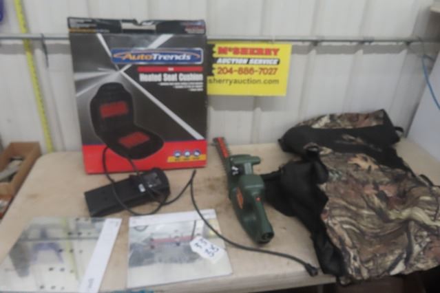 Auto Heated Seat Cushion, Power Surge Bar, Electric B+D 16" Hedge Trimmer, Cover, 30cm ×30cm Mirror Tile- 2 Pails