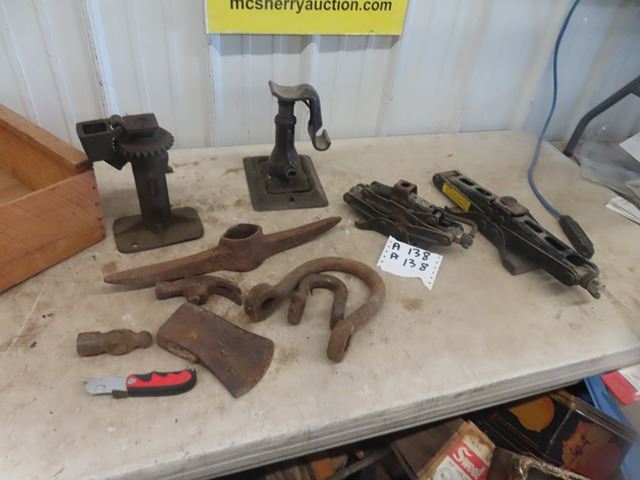 Auto Jacks, Wooden Crate, Pick & Axe Heads