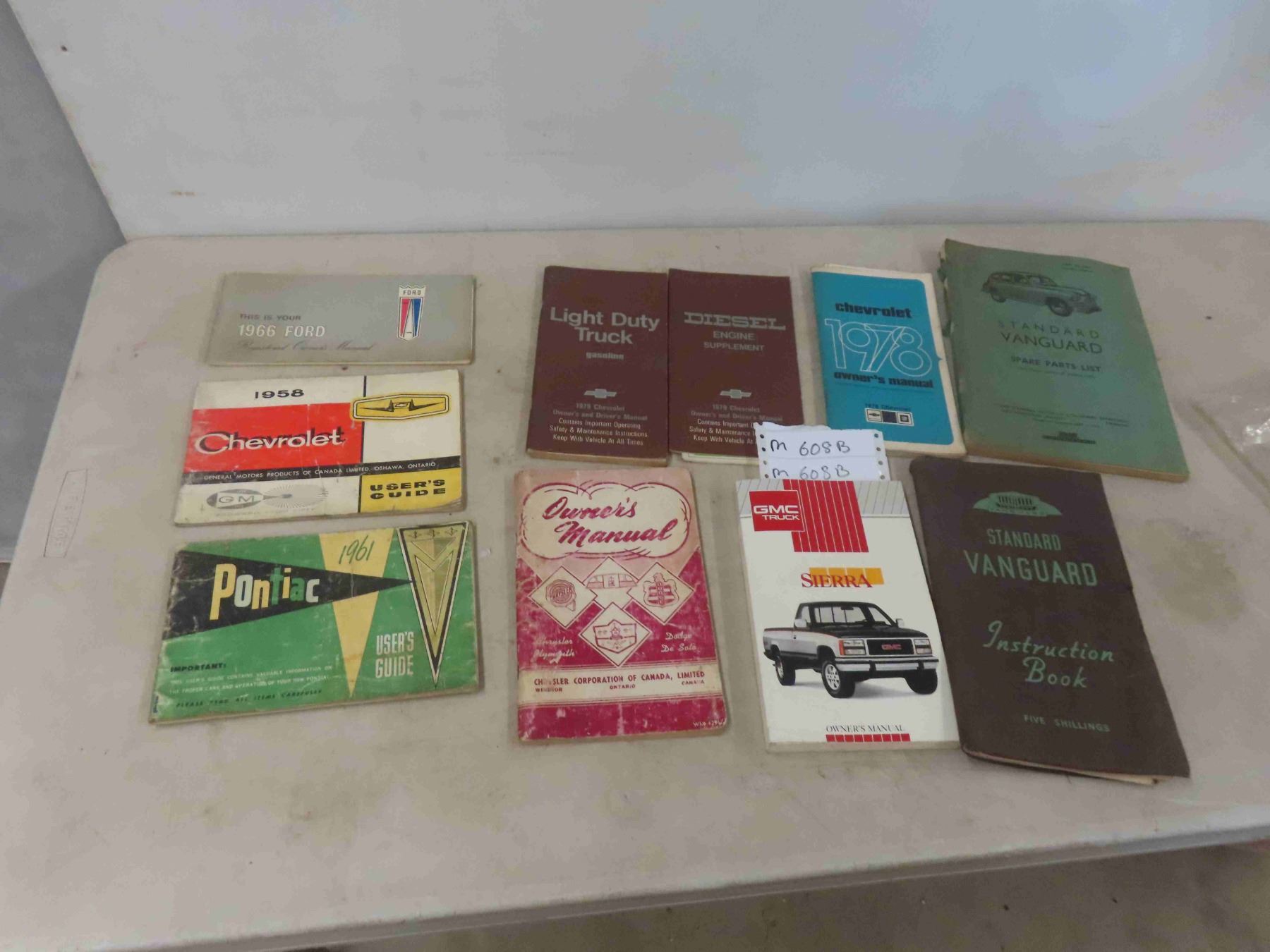 Auto Manuals:Vanguard, 1961 Pontiac, 1958 Chevy, 1966 Ford, Plus