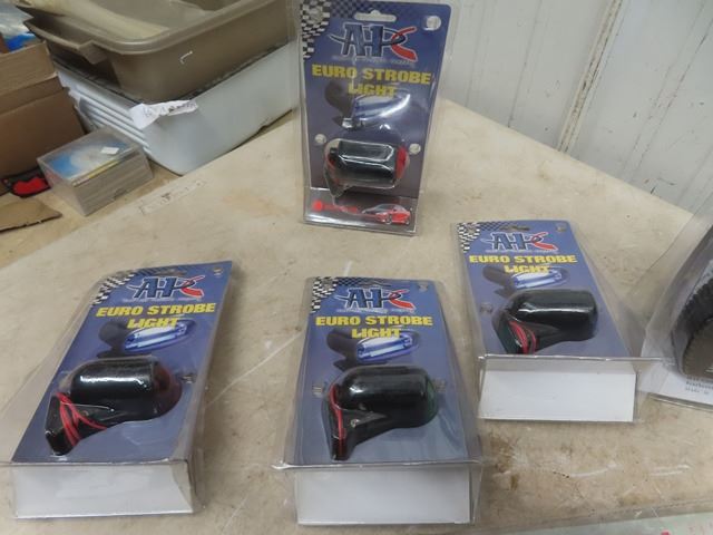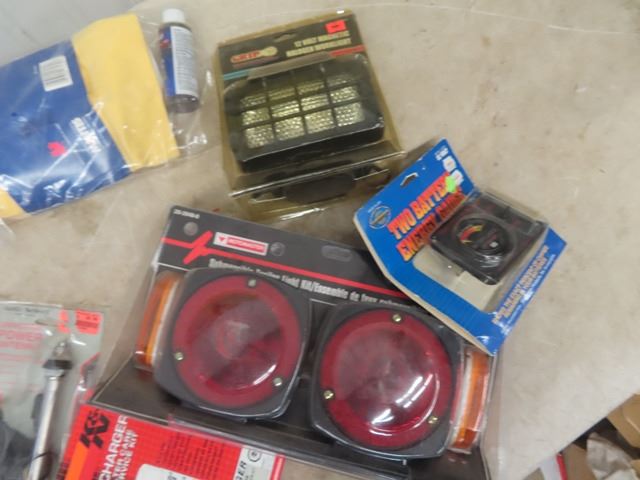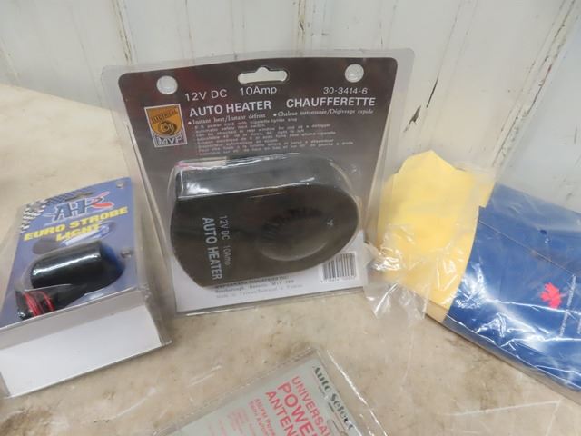 Auto Strobe Lights, Power Antenna, Car Heater, Tail Lights, Battery Gauge, Hitch Pin - most new in package