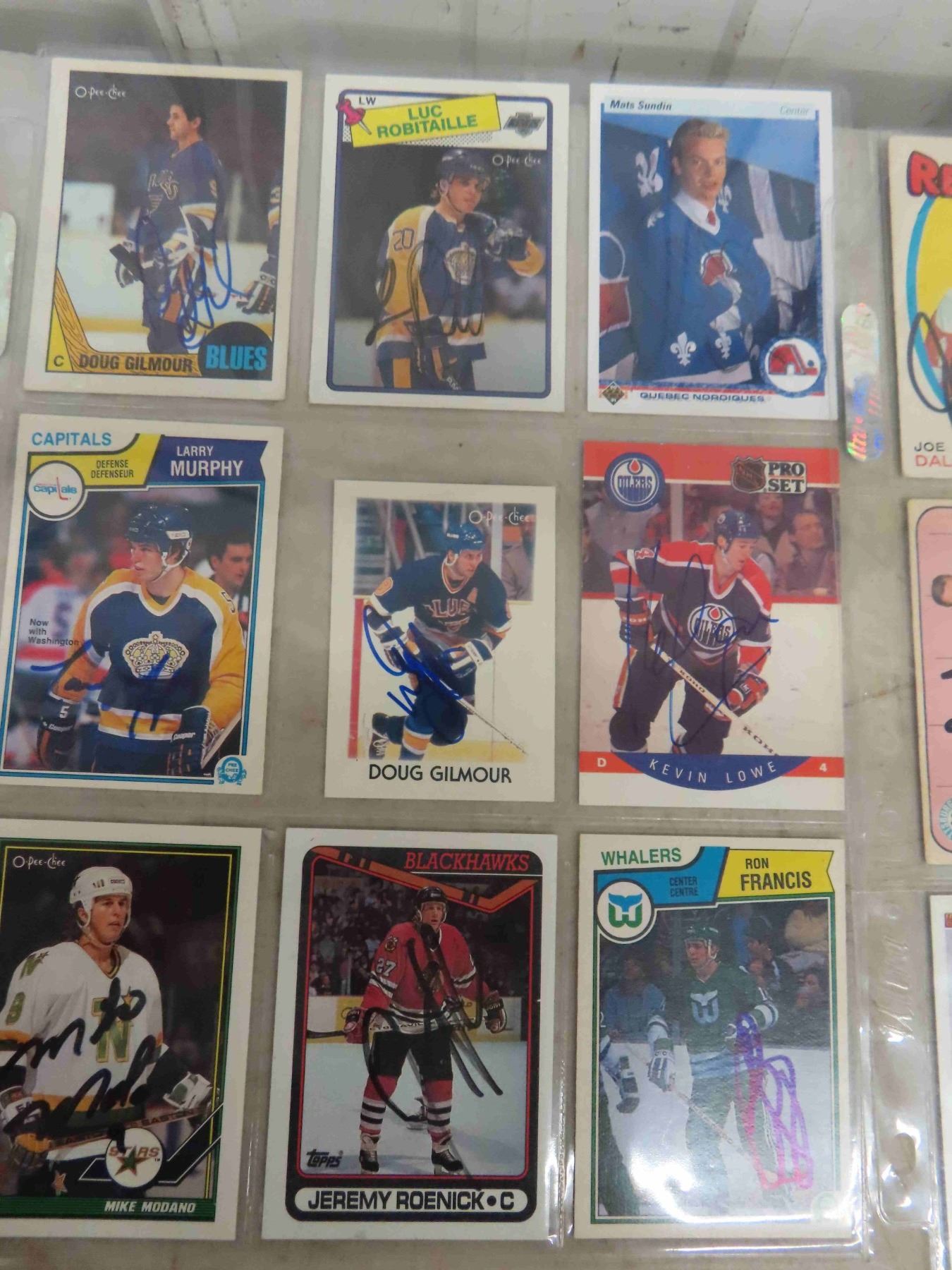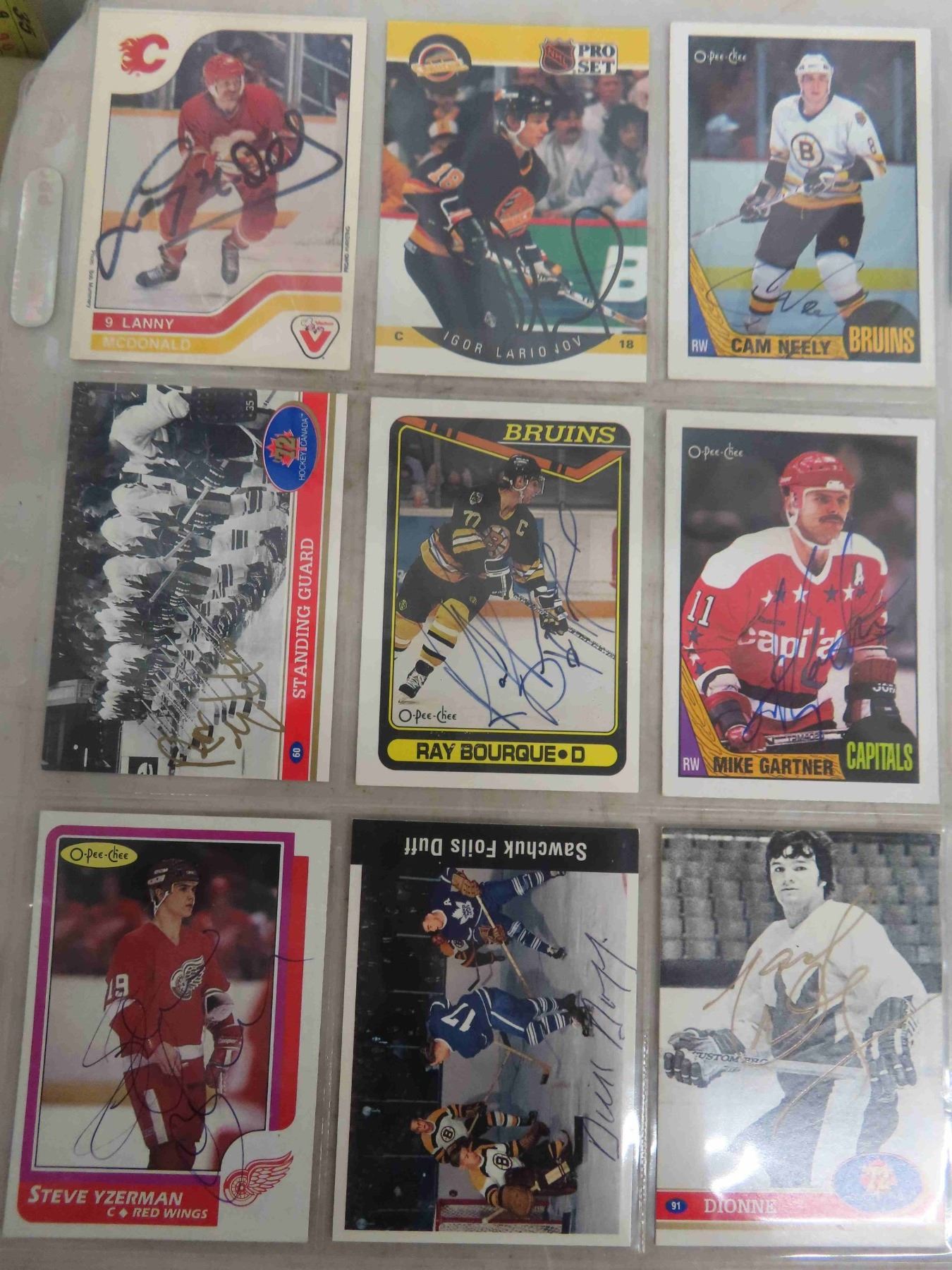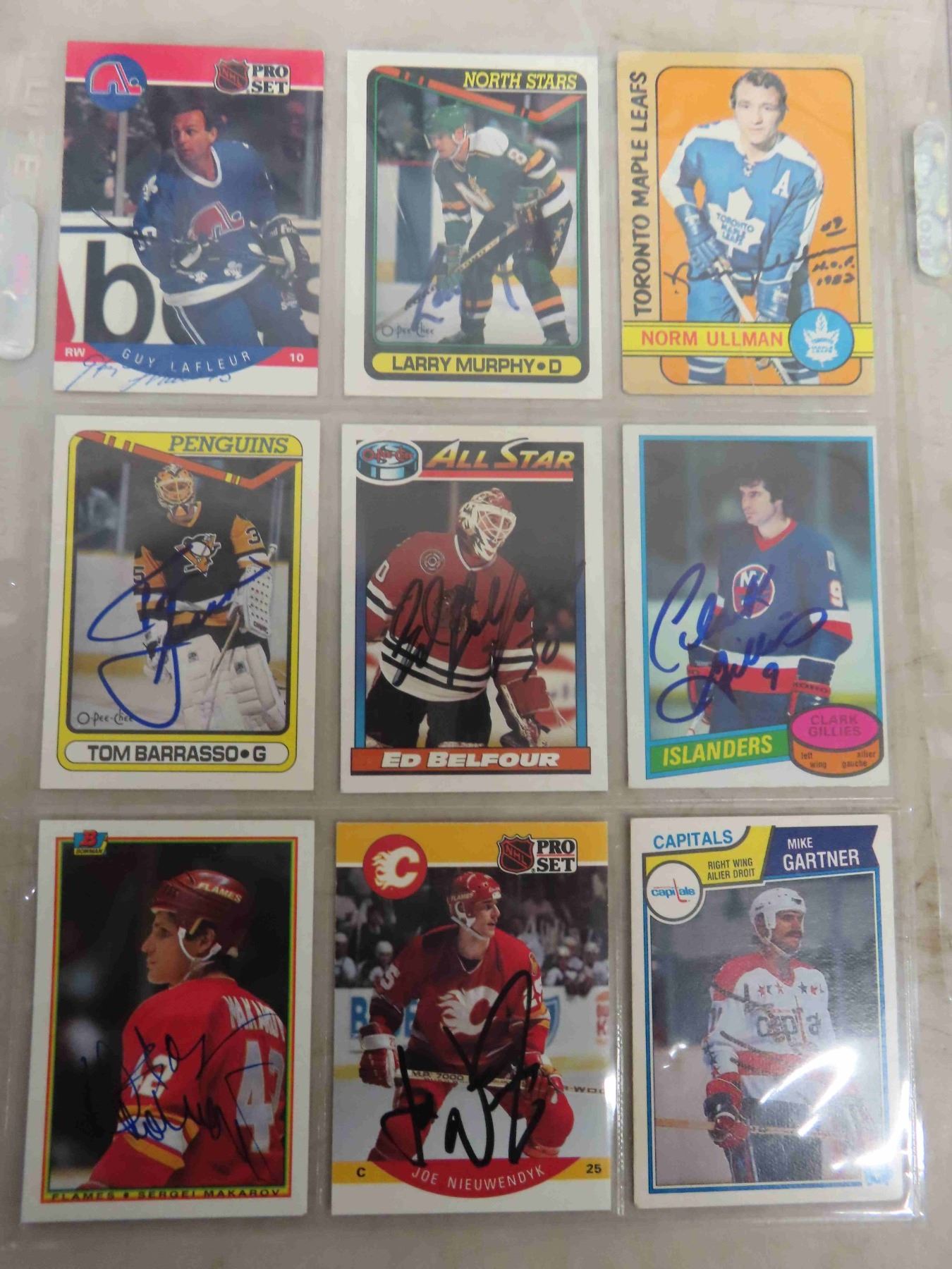 Autographed NHL Hall of Famer Card Lot ; Coffey, Bourque, Yserman, Dionne, Sundin, Modano, Trottier, Neely, Belfour plus others - 70 Signed Cards Total