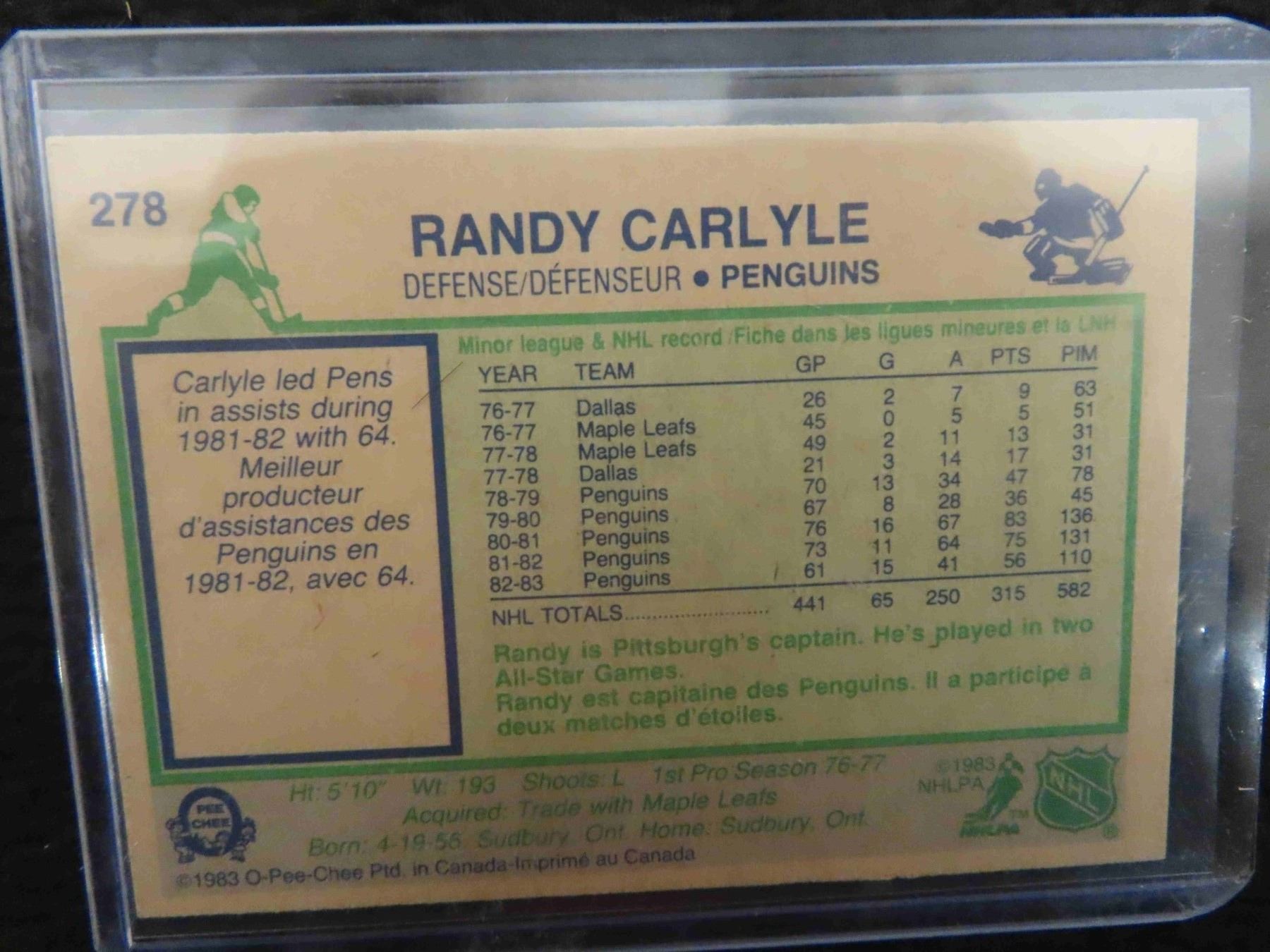Autographed Randy Carlyle Pittsburgh Penguins Card