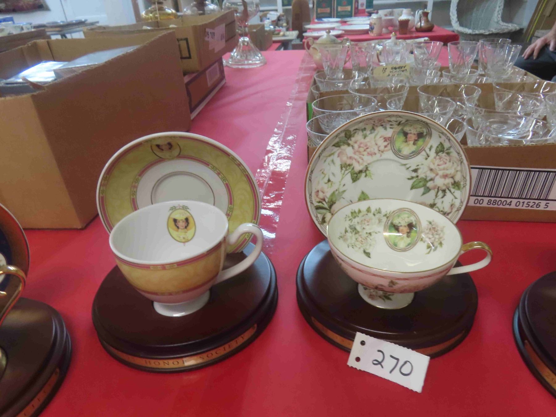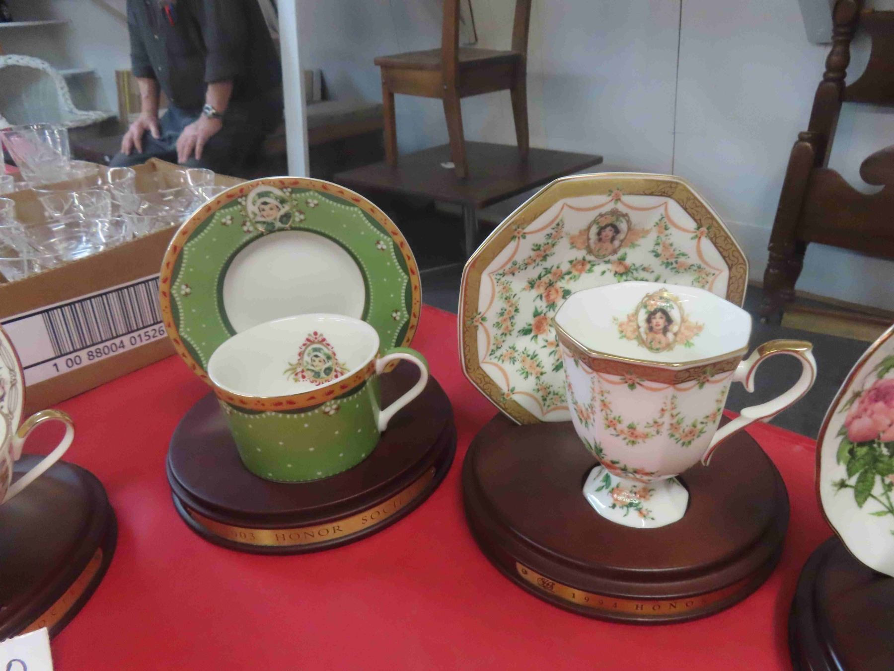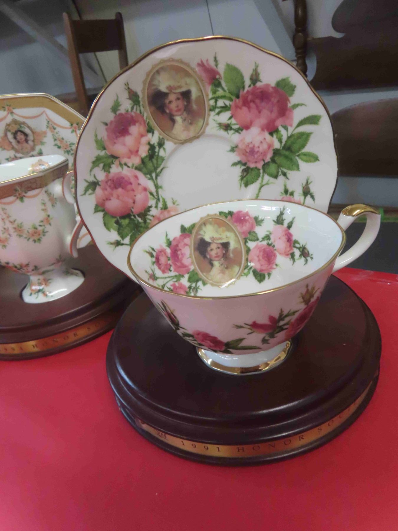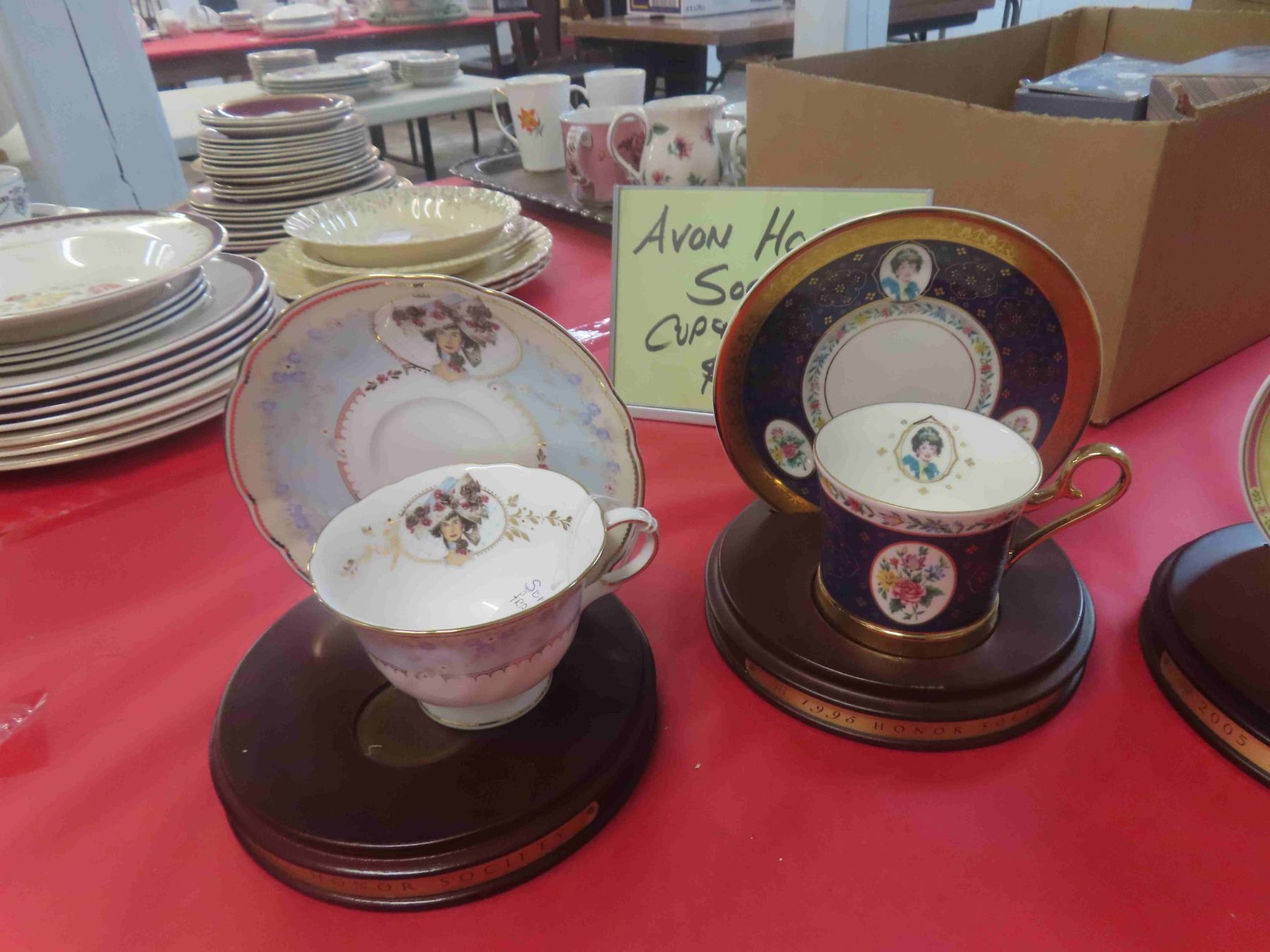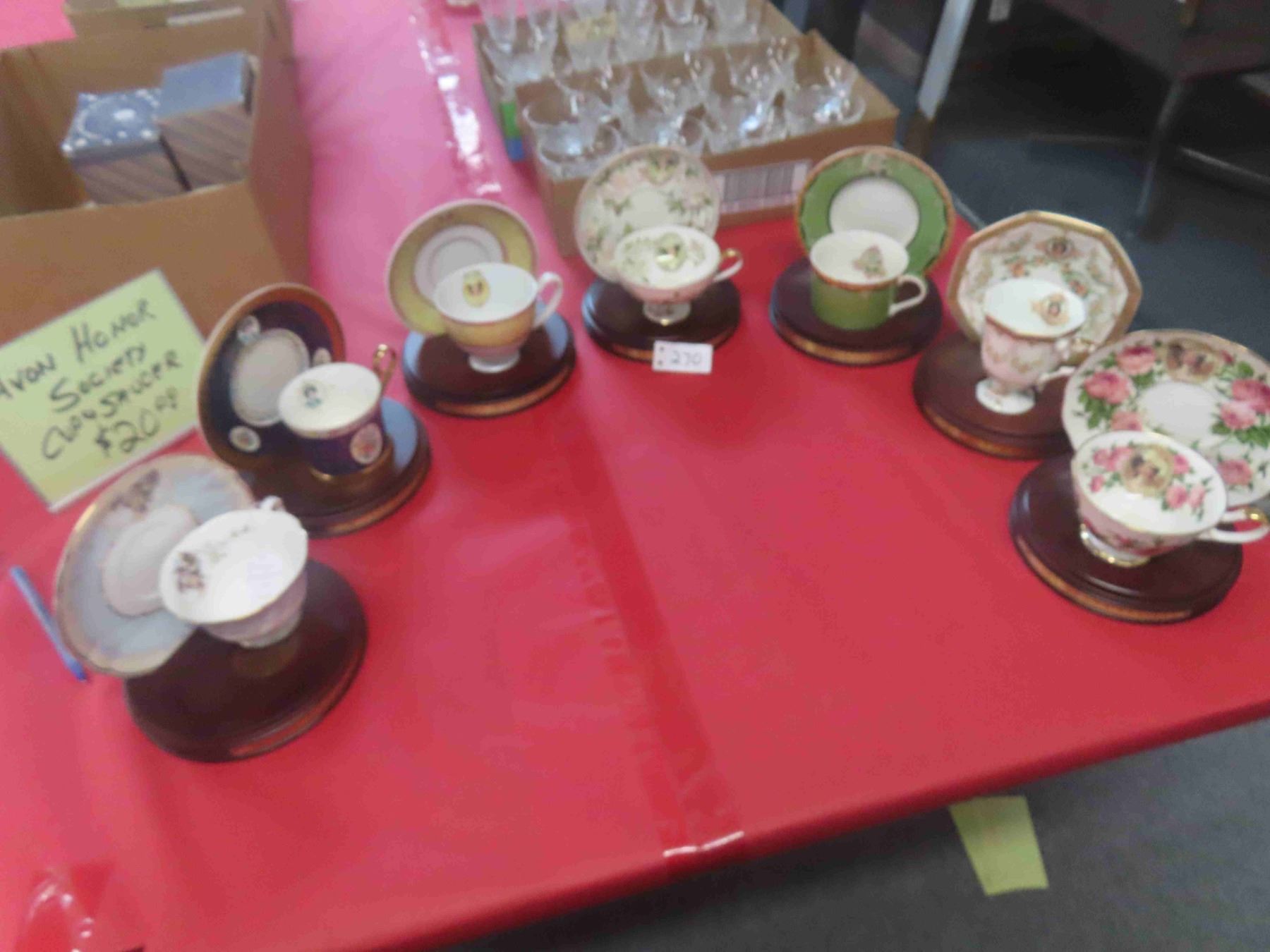 Avon Honor Society Cup + Saucer with Wooden Display Stand - 7 Sets