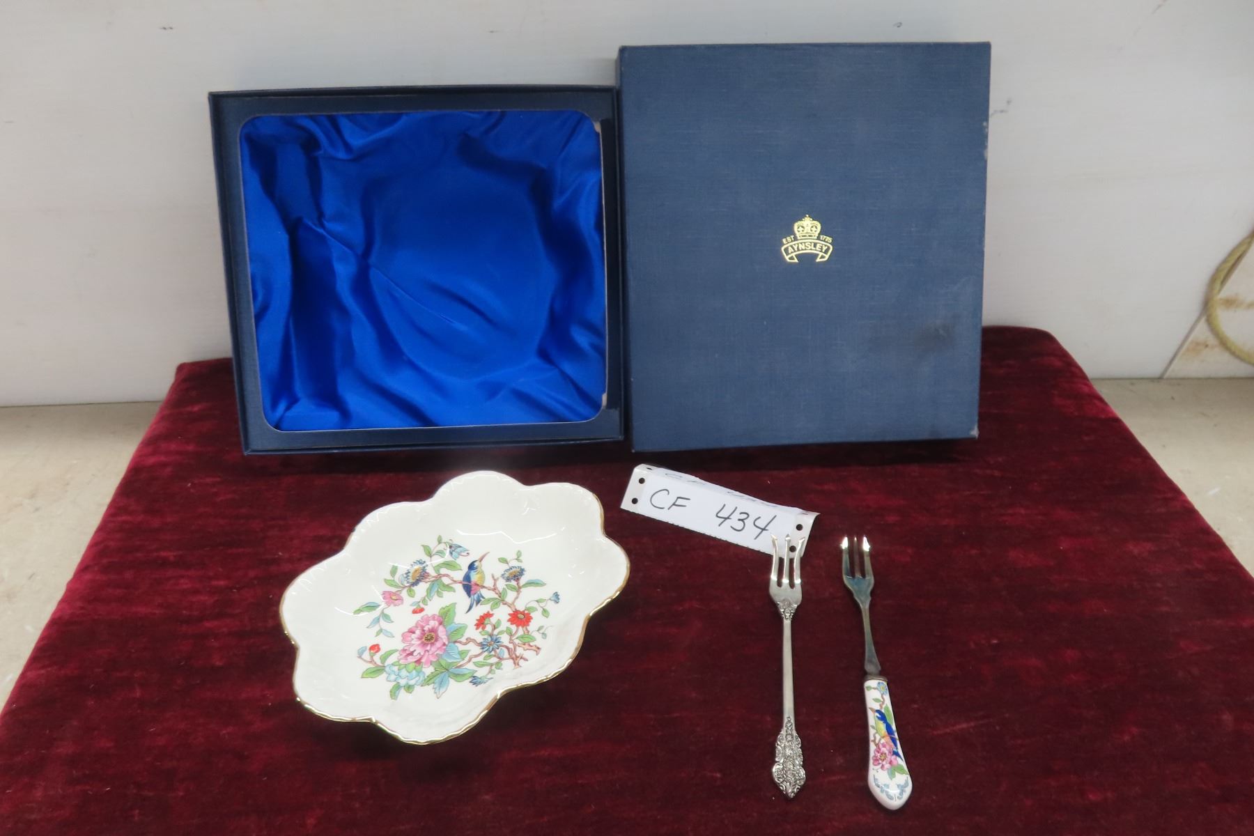 Aynsley Bowl with 2 Silver Plated Specialty Forks