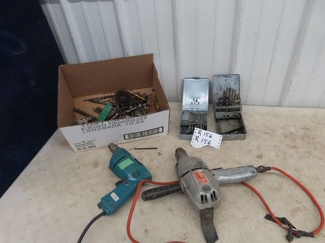 B & D 1/2" Drill, 3/8 Makita Drill, & Drill Bits