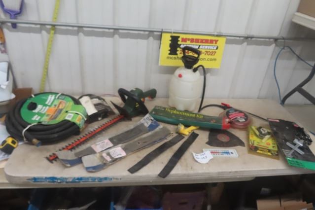 B+D 22" Electric Hedger, Bottle Sprayer, Sprinkler, Soaker Hose, Lawn Mower Blades plus more