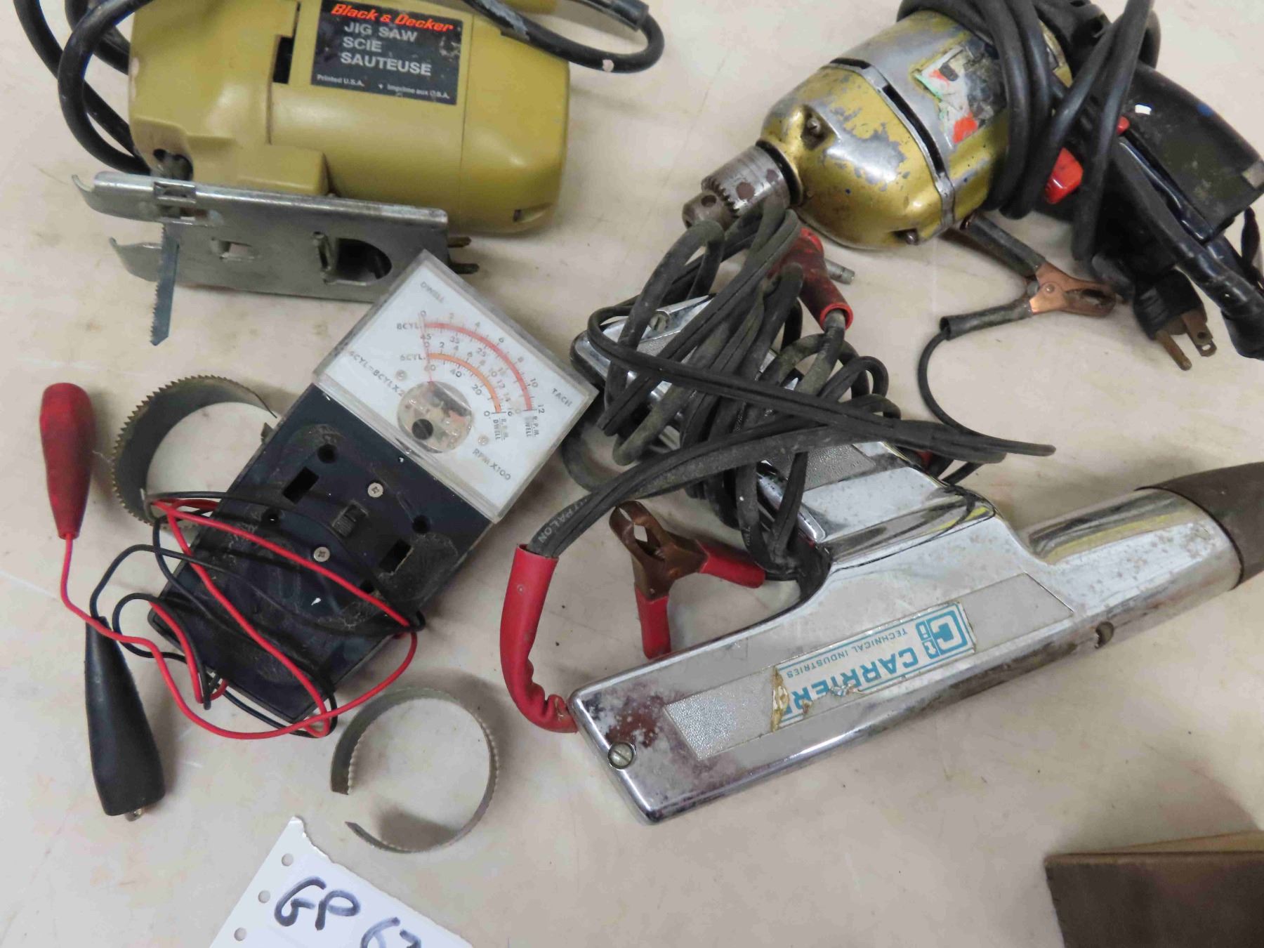 B+D Jig Saw + Drill, Dwell Tester, Timing Gun, Old Model T Coil, plus more