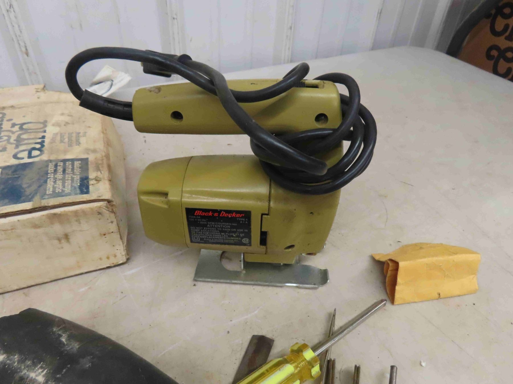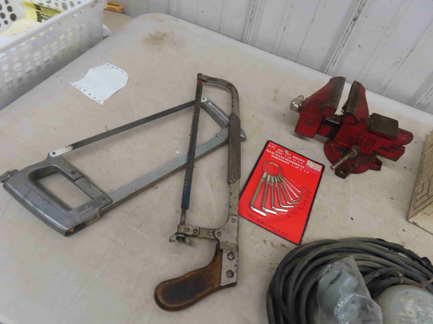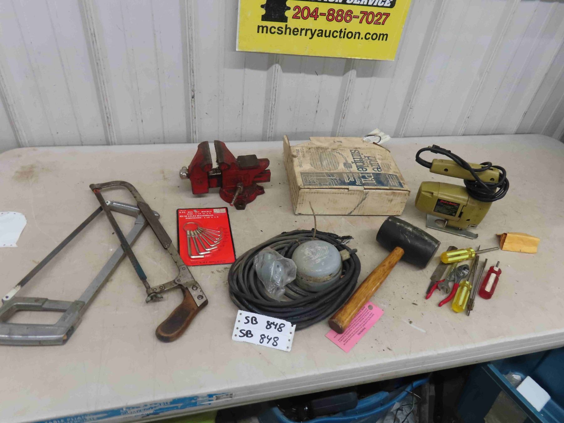 B+D Jig Saw, Fuller Vice, Hack Saw, PIL Floating Pump Switch, Plus Odds n Ends of Tools