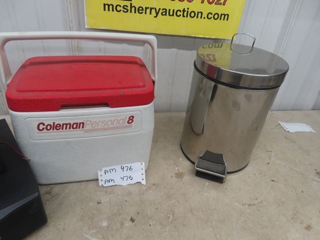 B+P Coffee Machine, Daewoo Speaker, Coleman Cooler, Stainless Steel Garbage Can