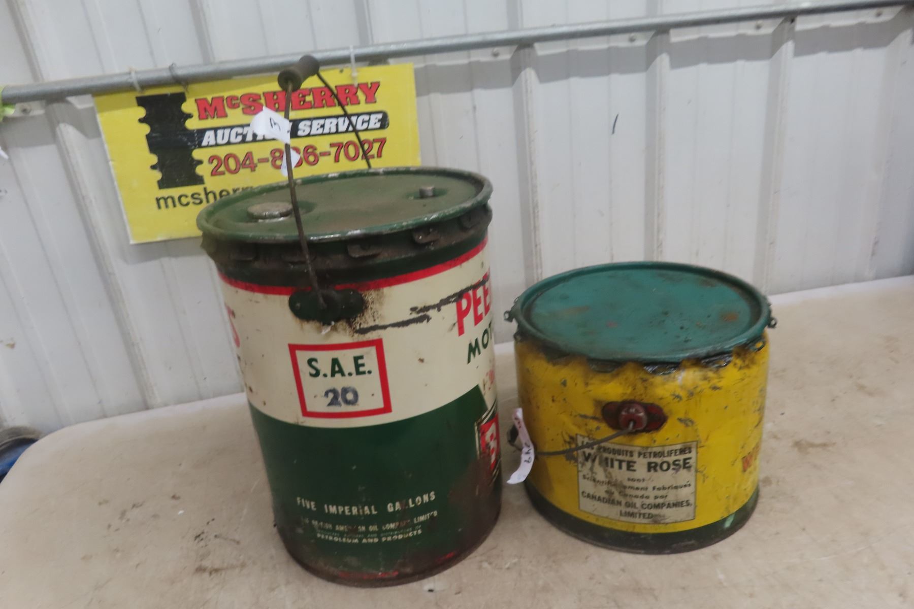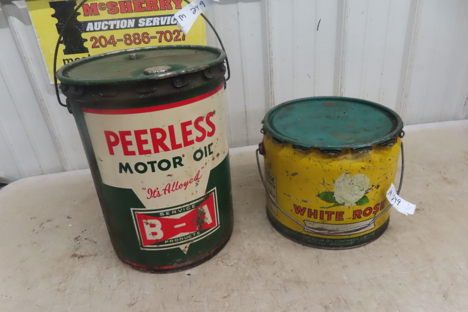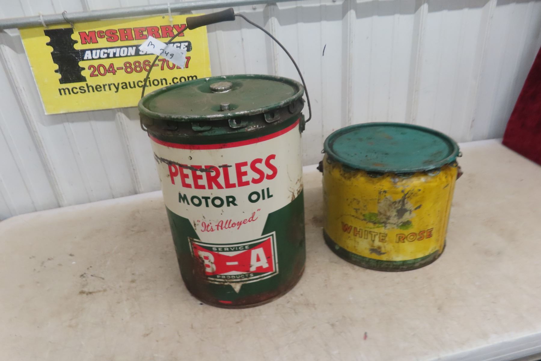 BA Bowtie 5gal Oil Pail , White Rose 25lbs Grease Pail