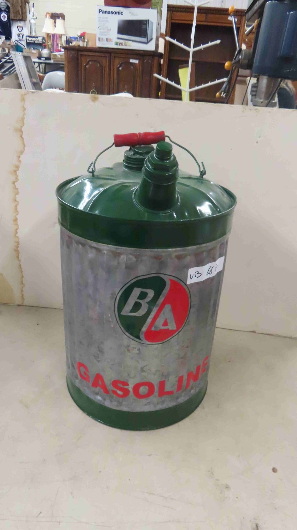 BA Logo Restored Gas Can with Wooden Handle 11" x 16" t