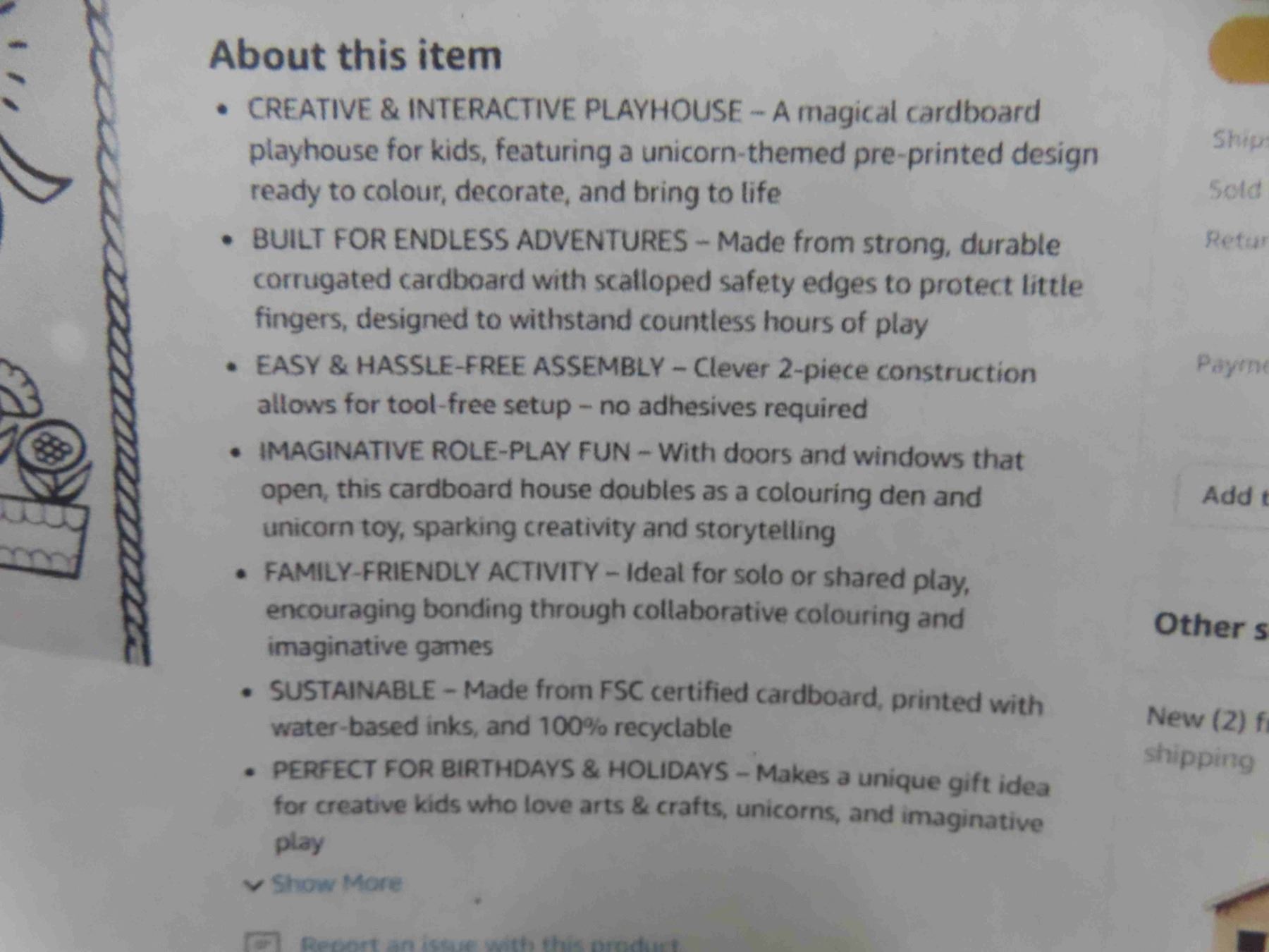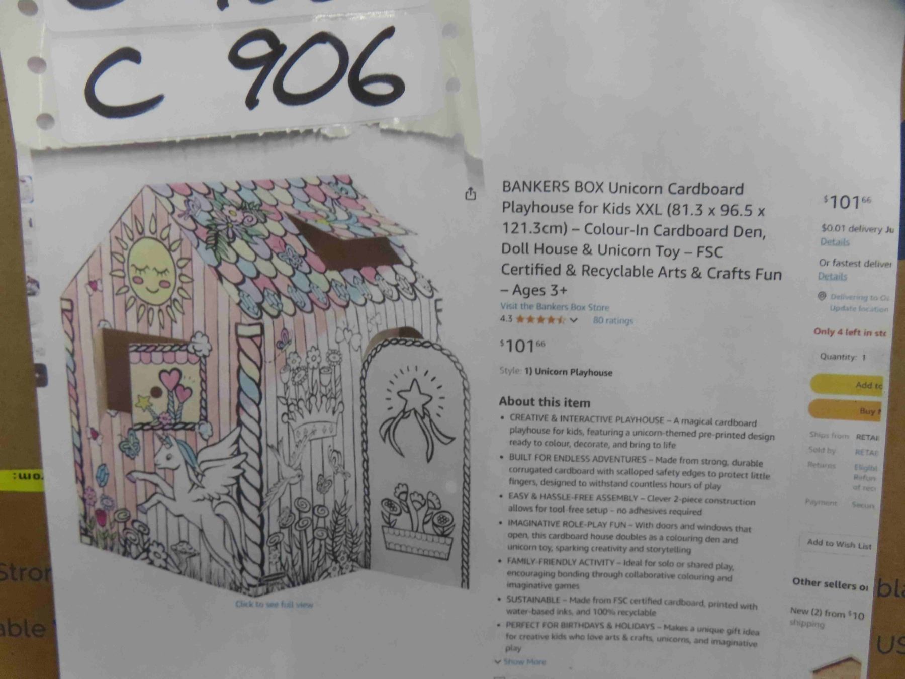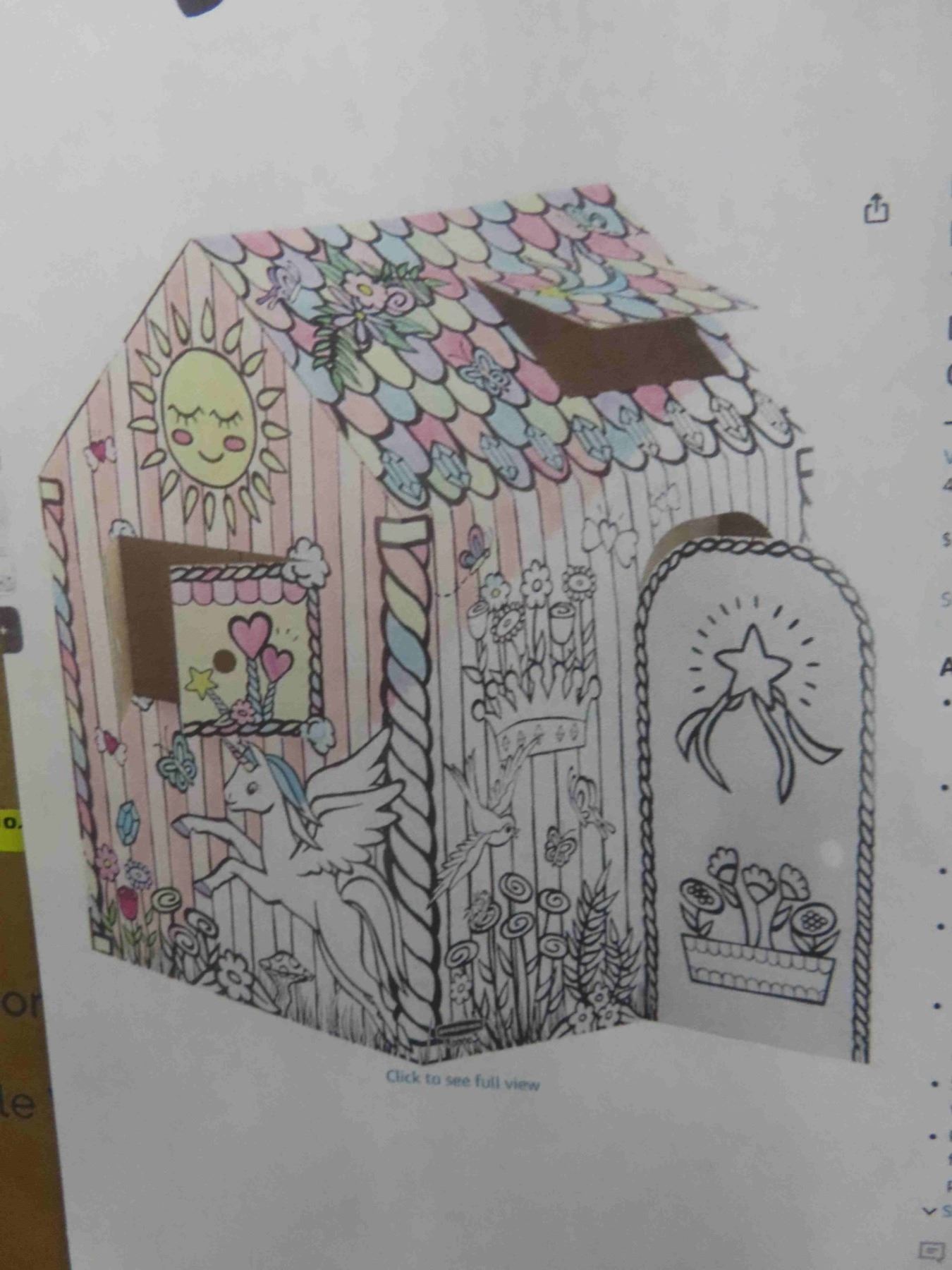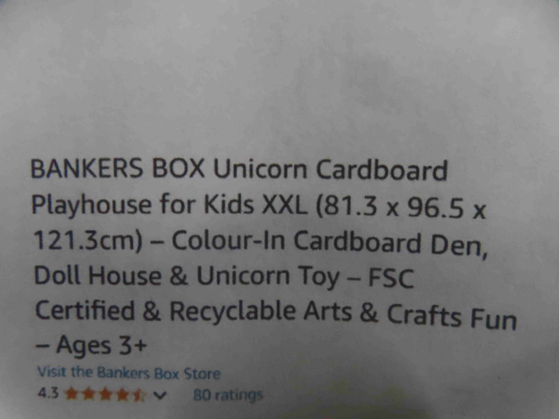 BANKERS BOX Unicorn Cardboard Playhouse for Kids XXL (81.3 x 96.5 x 121.3cm) – Colour-In Cardboard Den, Doll House & Unicorn Toy – FSC Certified & Recyclable Arts & Crafts Fun - New or Store Return