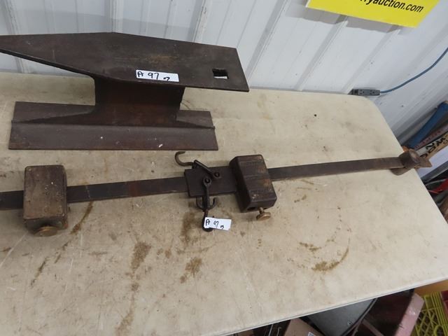 BARRET Lg Builidng Jack w Hood Handle & Anvil,& Fairbanks Scale