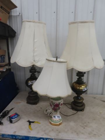 (BC) 3 Table Top Lamps, 2 Are Matching Brass 1 Victorian Style