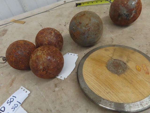 (BD) 2 Competitve Sport Cable Hammers, 1- Discus, & 3 Shot Puts