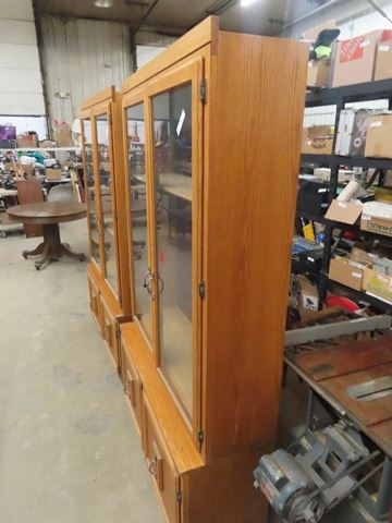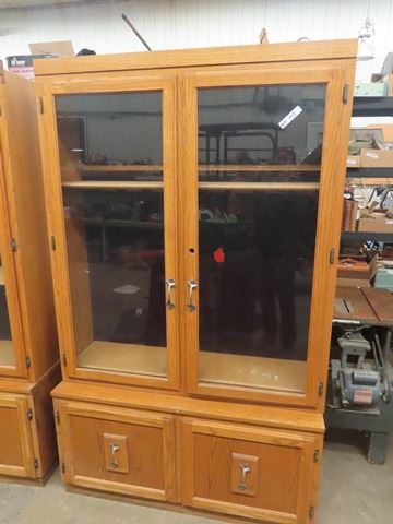 (BD) Oak 2 Door Display Case w Bottom Drawer 2 Pcs 78" x 48" x 16"