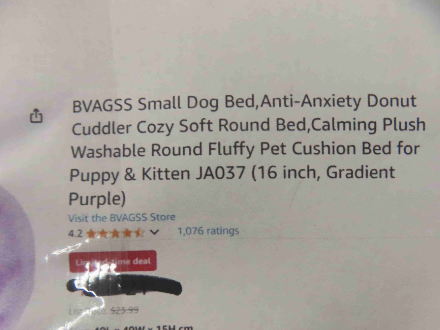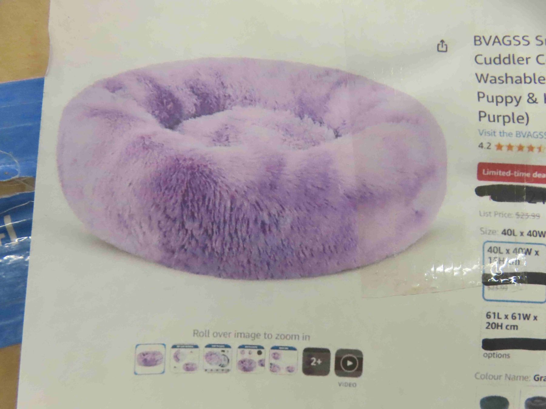 BVAGSS small dog bed, anti- anxiety donit cuddler cozy soft round bed, calming plush washable round fluffy pet cushion bed for pippy and kitten, JA037 (16 " graident purple, new or store return