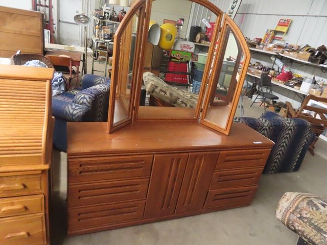 (BZ) Oak Dresser w Tri- Mirror 30" x 70" x 18" Plus Tri- Mirror 42" x 40"