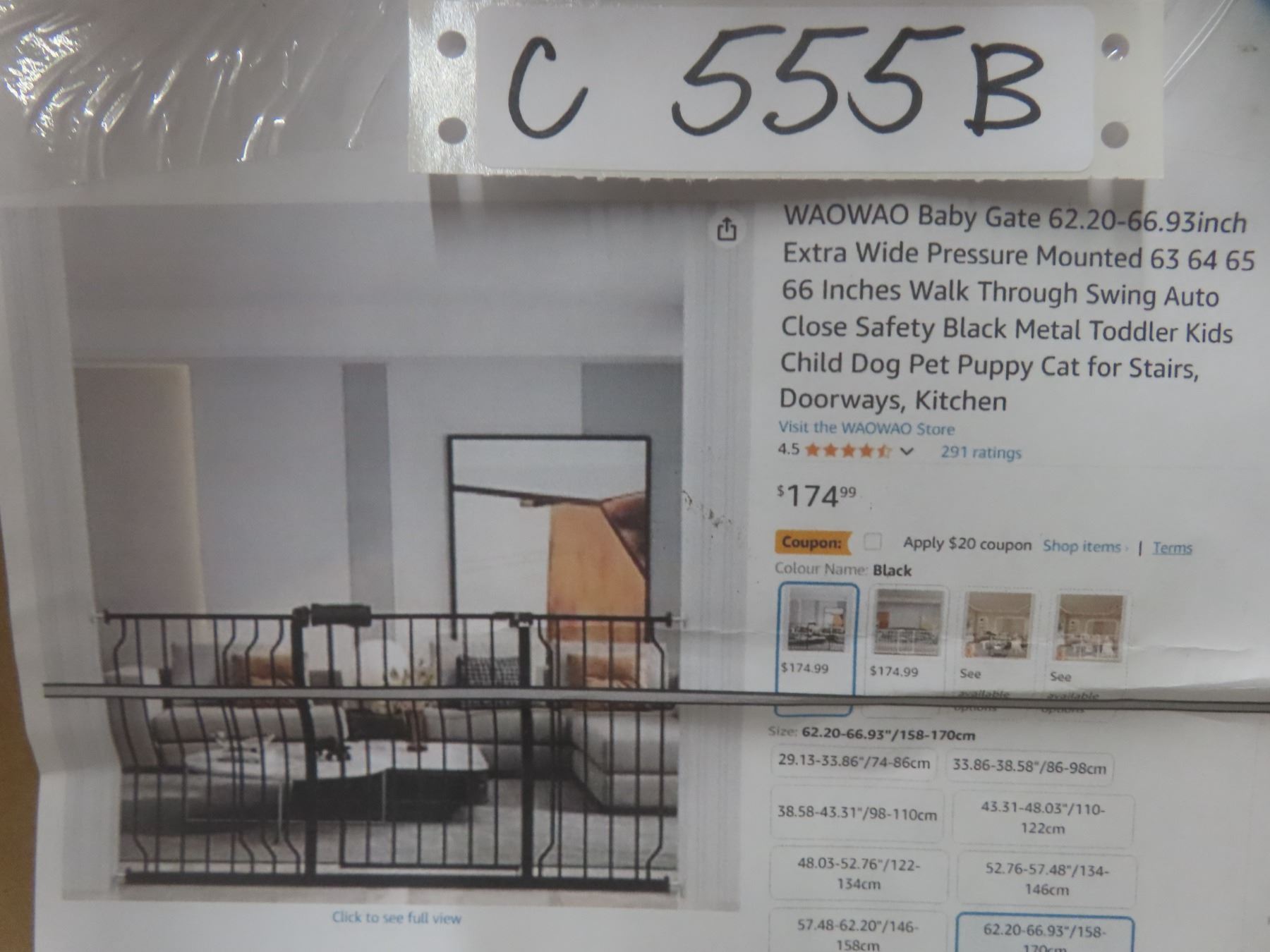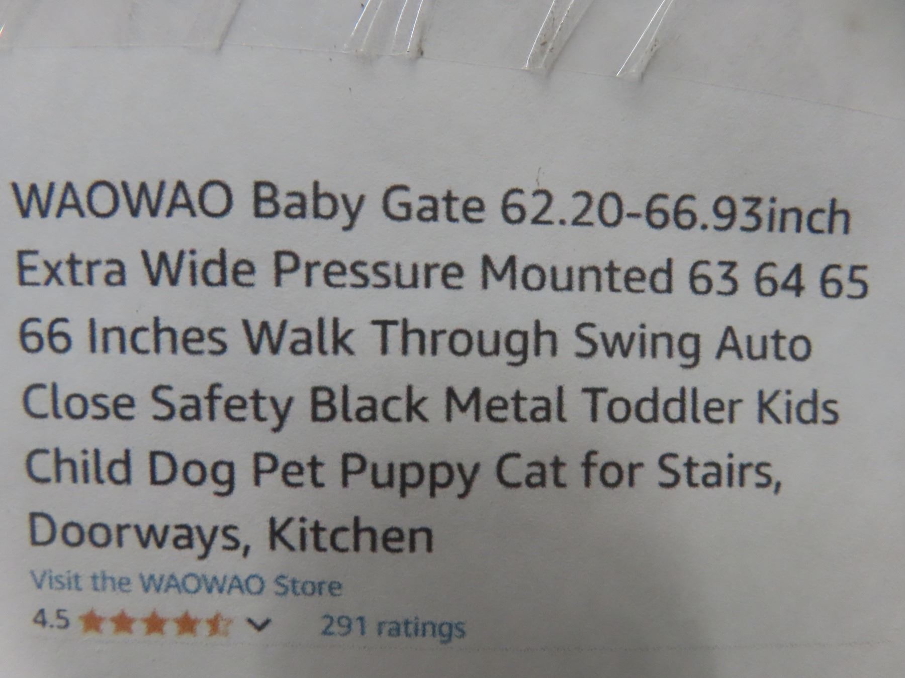 Waowao Baby Gate 62.20-66.93 inch Extra Wide Pressure Mounted 63 64 65 66 Inches Walk Through Swing Auto Close Safety Black Metal Toddler Kids Child Dog Pet Puppy Cat for Stairs, Doorways, Kitchen