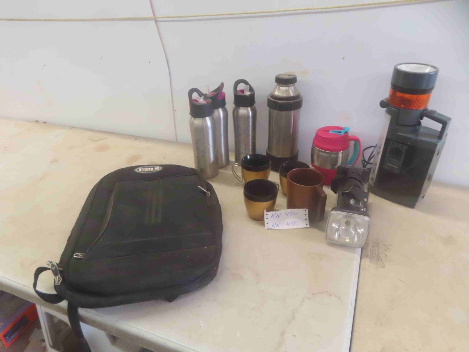Backpack AM/FM Flashlight Combo, Insulated Travel Mugs & More