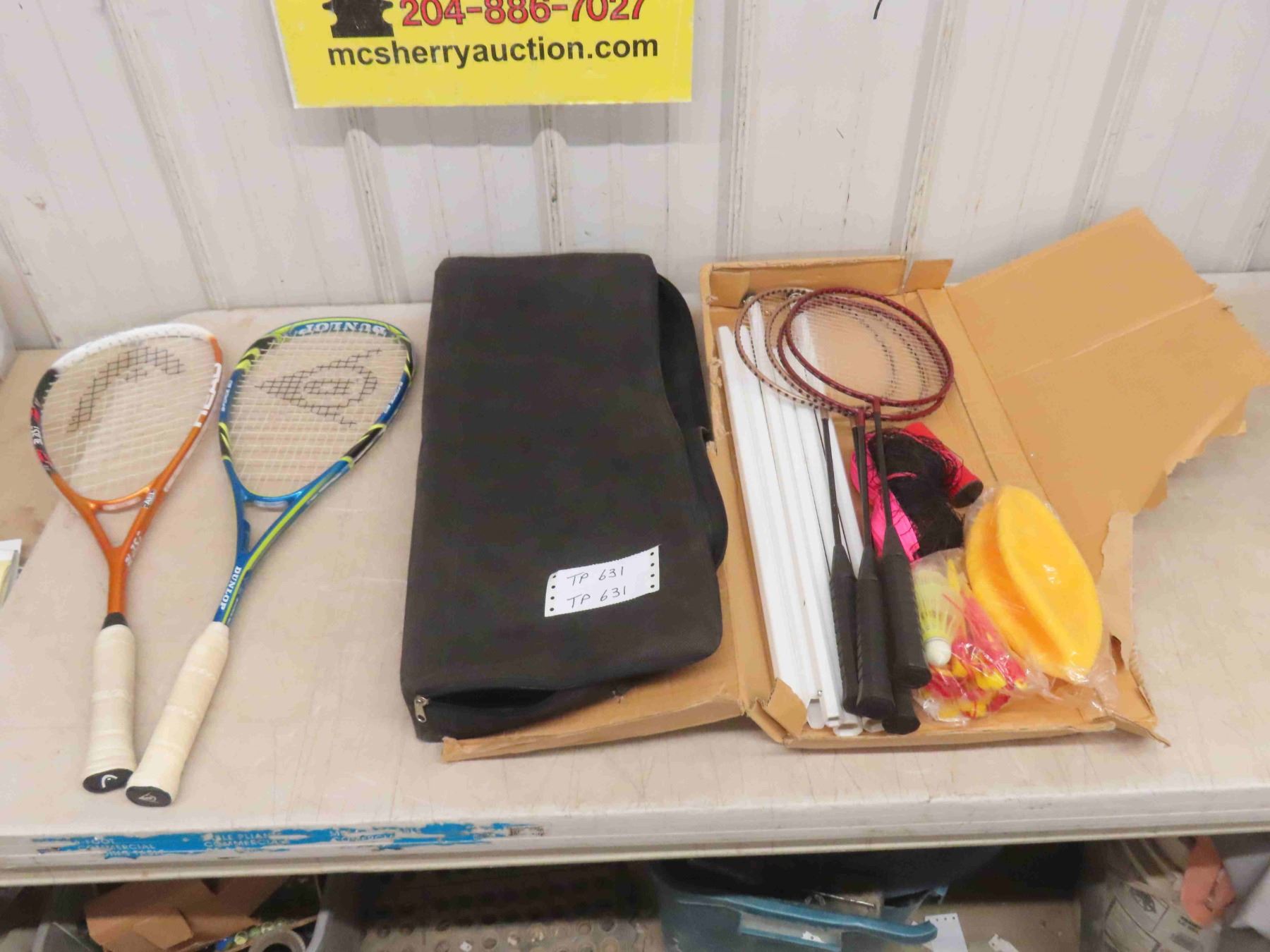 Badminton Complete Set for 4 with Storage Bag + 2 Squash Rackets