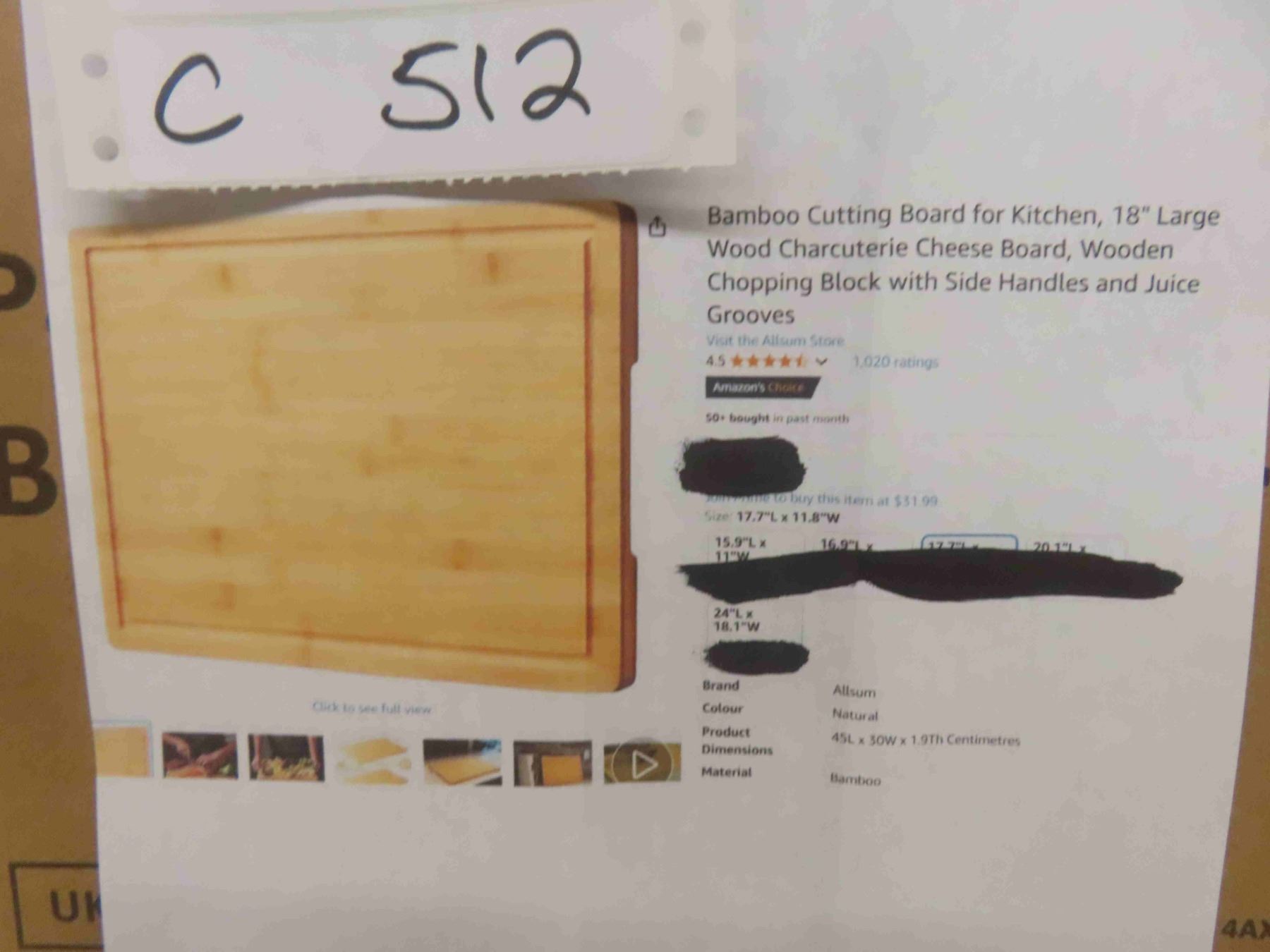 Bamboo Cutting Board for Kitchen, 18" Large Wood Charcuterie Cheese Board, Wooden Chopping Block with Side Handles and Juice Grooves - New or Store Return