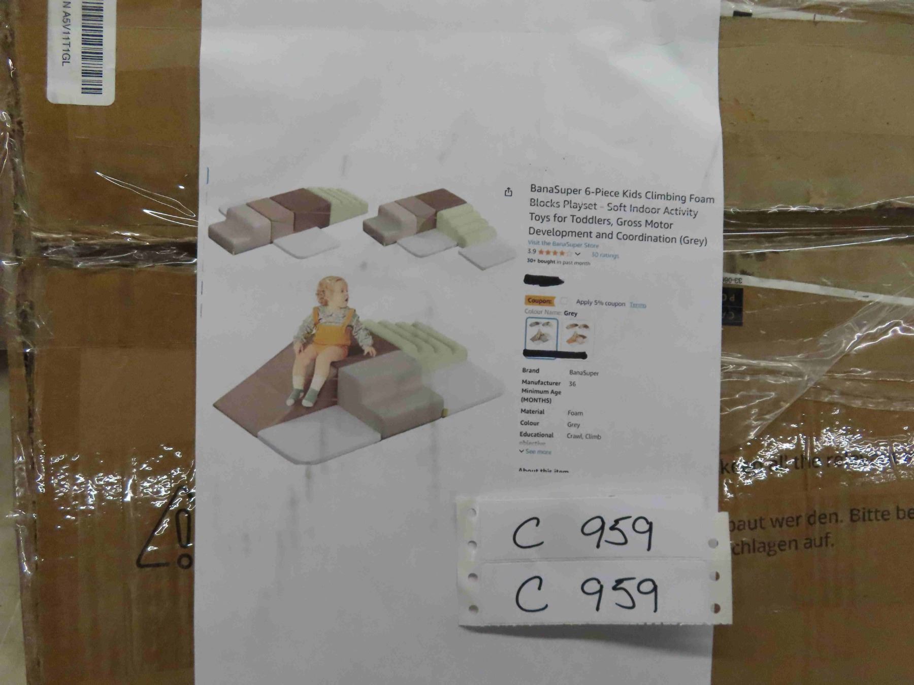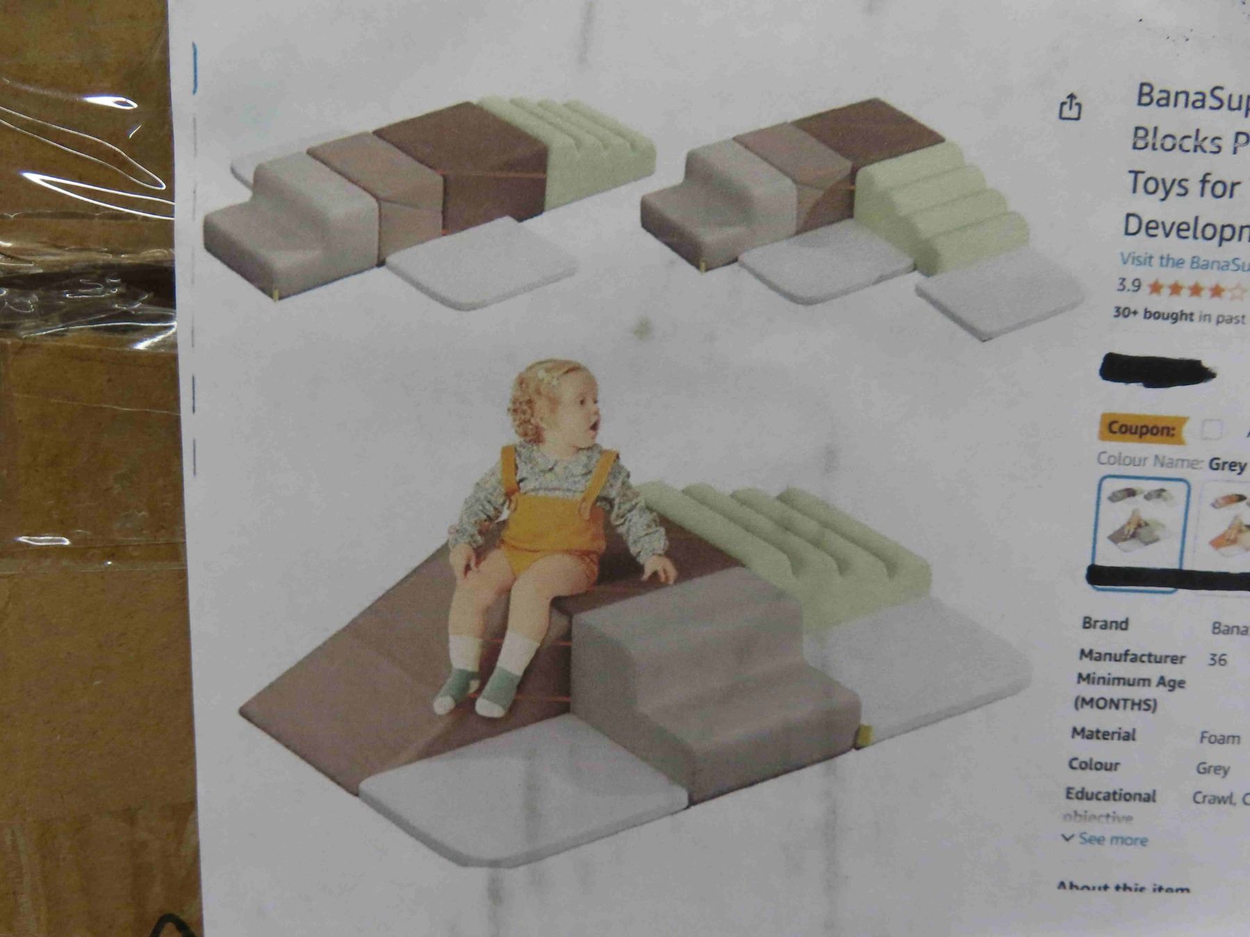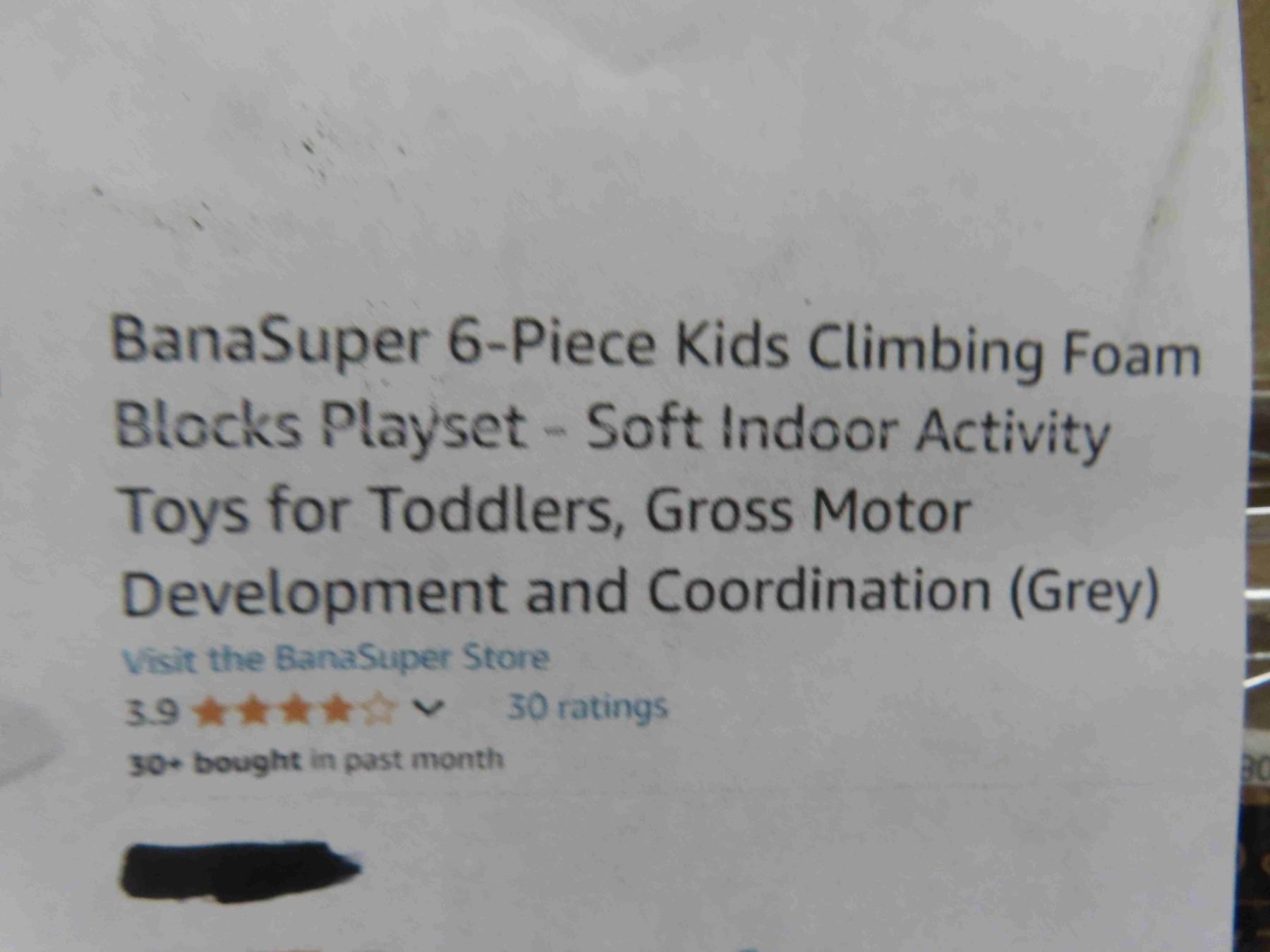BanaSuper 6pce Kids Climbing Foam Blocks Playset , Soft Indoor Activity Toys for Toddlers, Gross Motor Development and Coordination (Grey) - New or Store Return