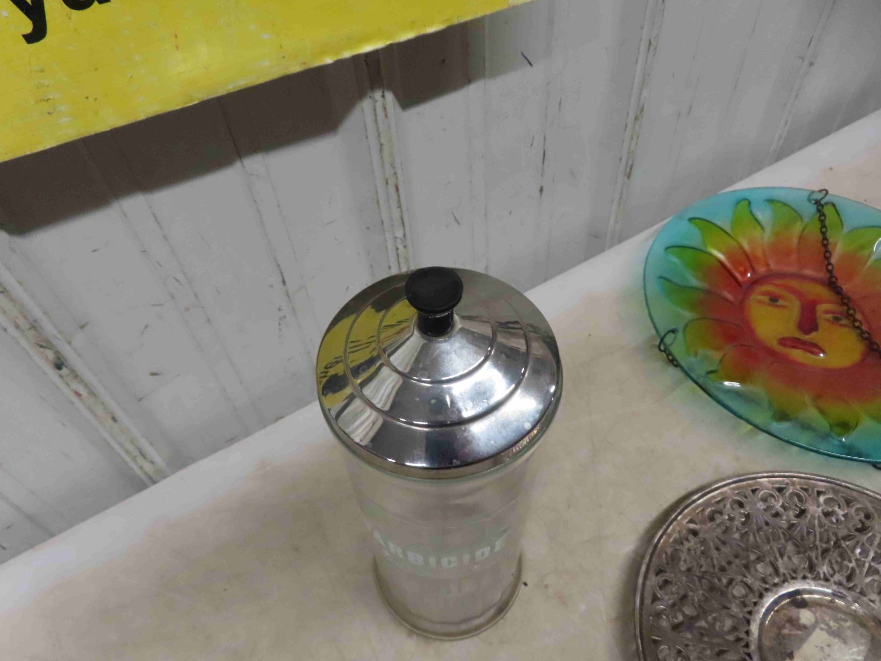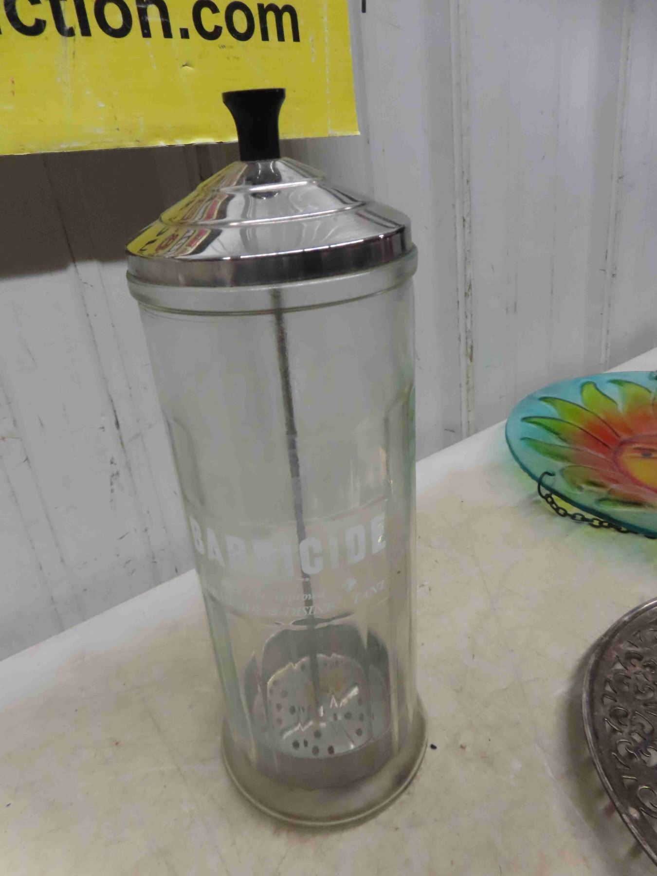 Barbicide Barber Disinfectant, Silverware Tray, Yard Bird Feeder, Plate