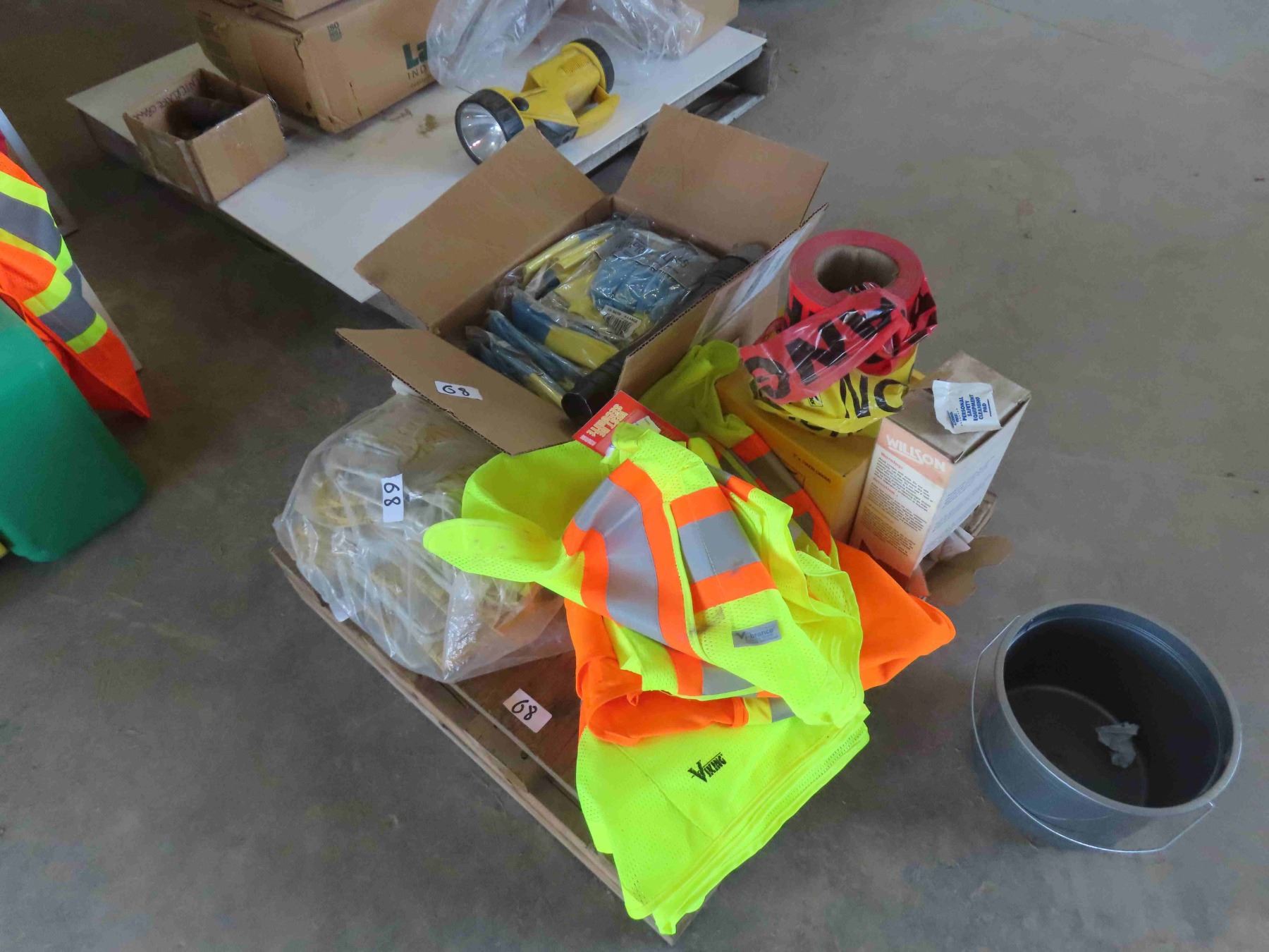 Barricade Tape, Work Gloves, Plastic Gloves, Safety Vests, Police Flashlight