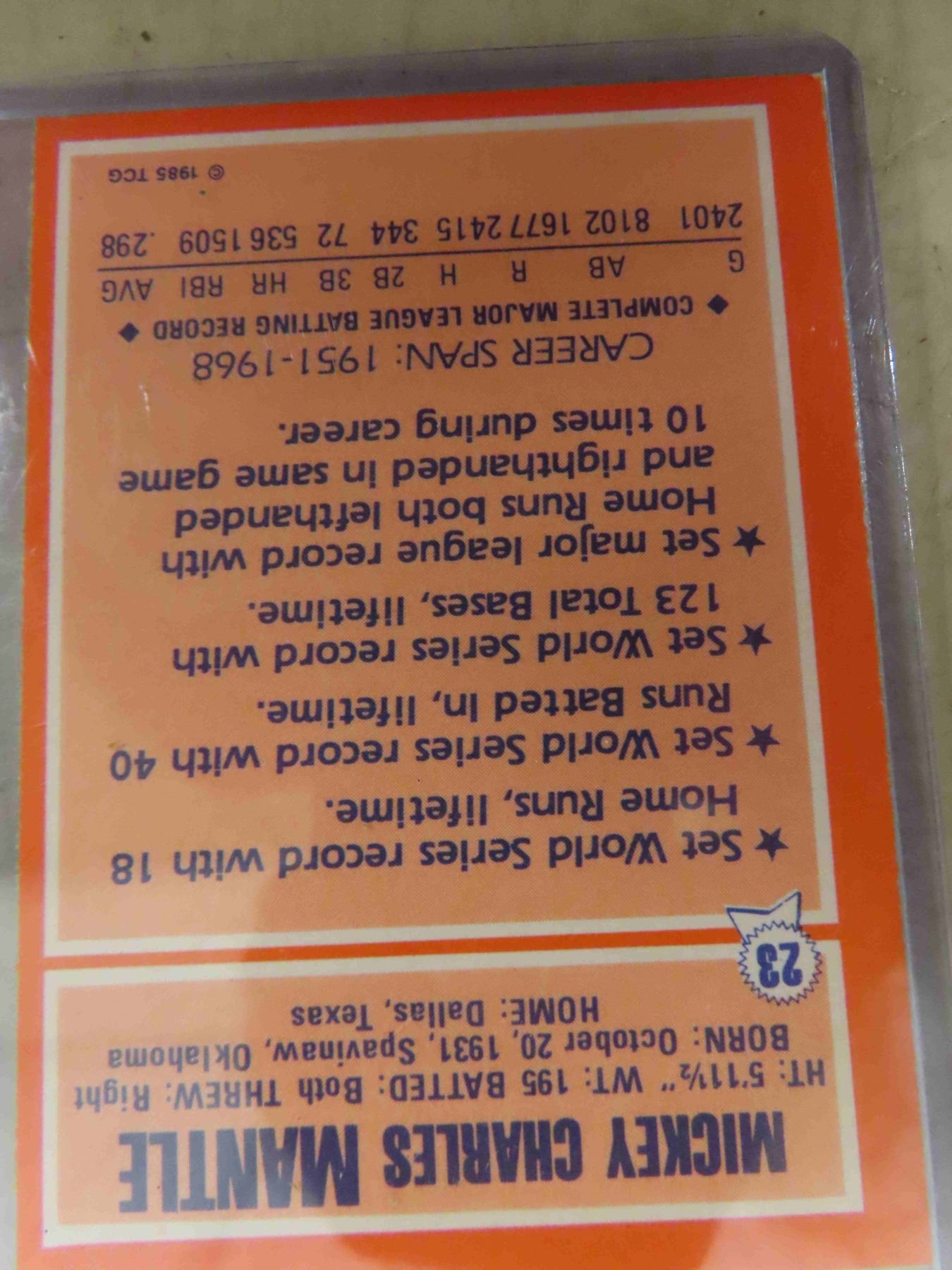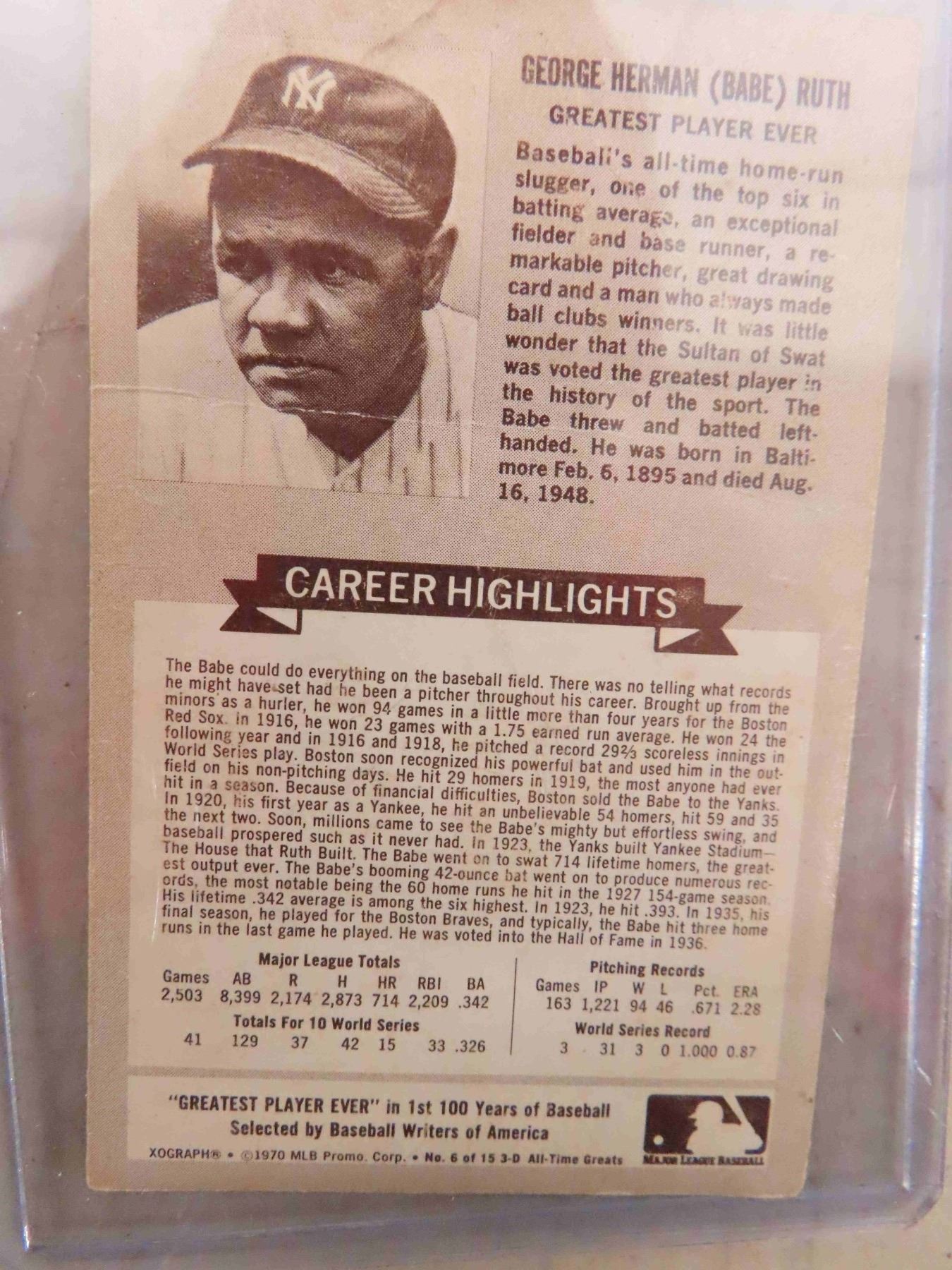 Baseball Cards : 1970 Babe Ruth (MLB Promo Card) , 1985 Topps Mickey Mantle (All Time Record Holder)