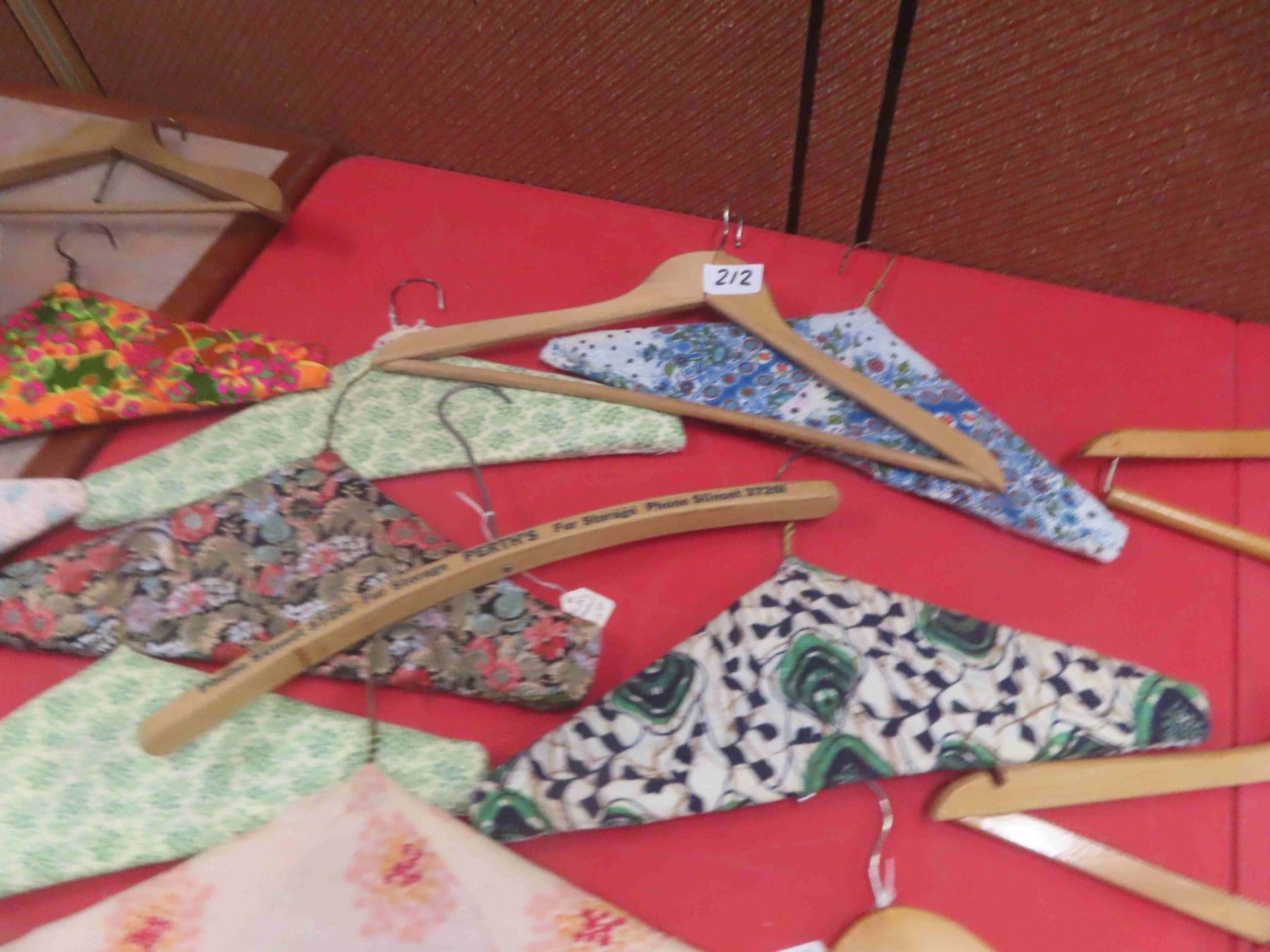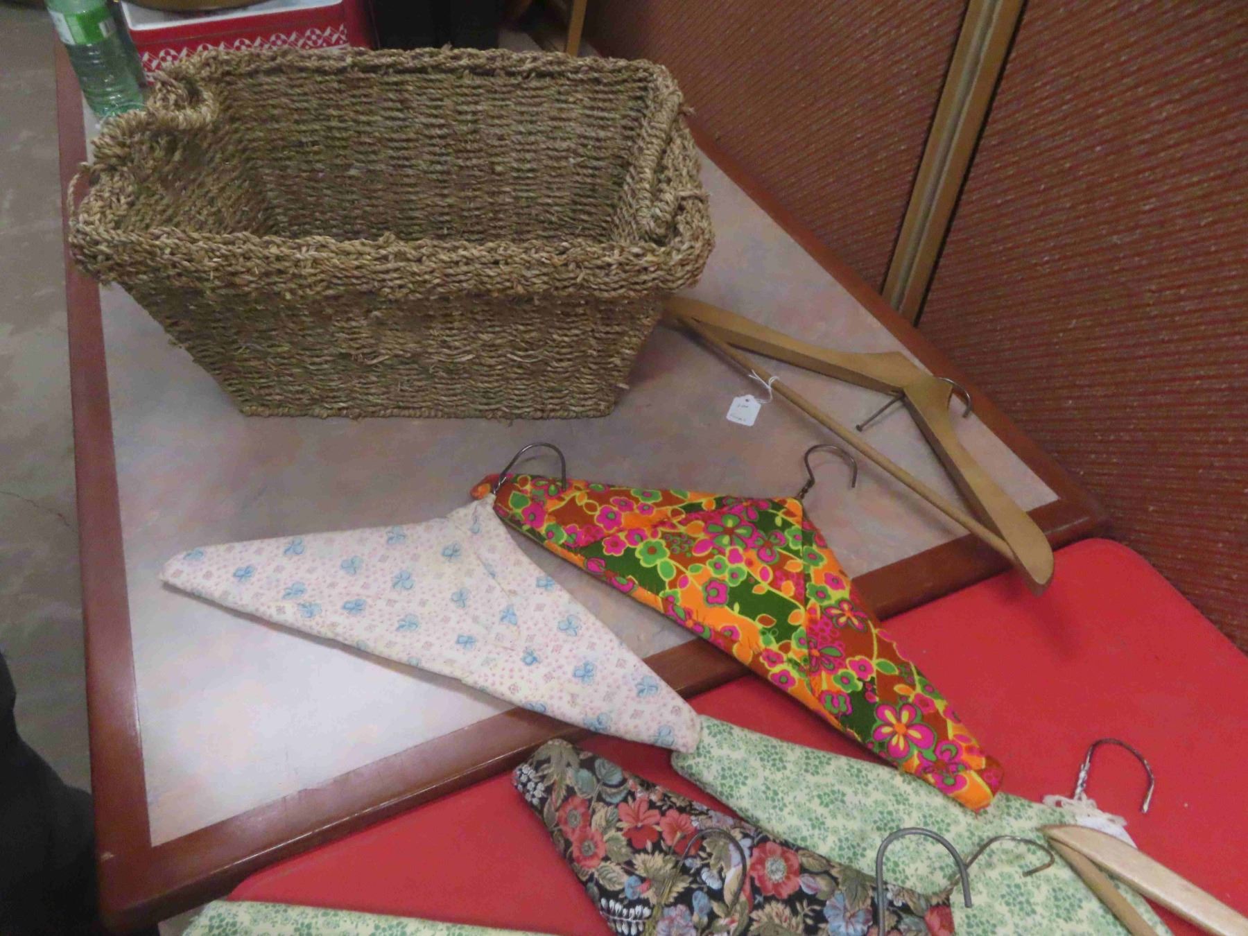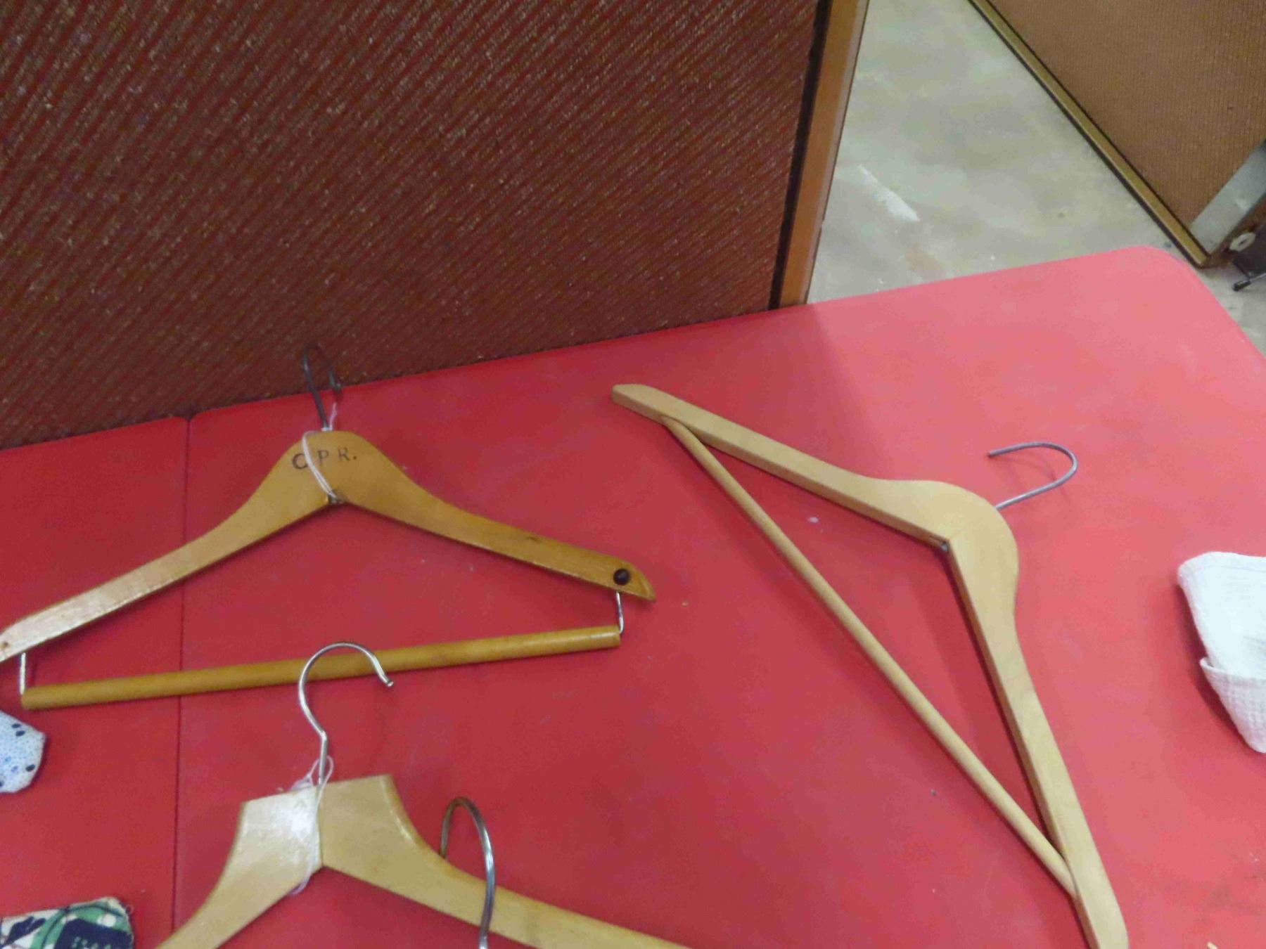 Basket Full of Wood Hangers Some with Advertising : Hudsons Bay, CPR, Perths, Eatons