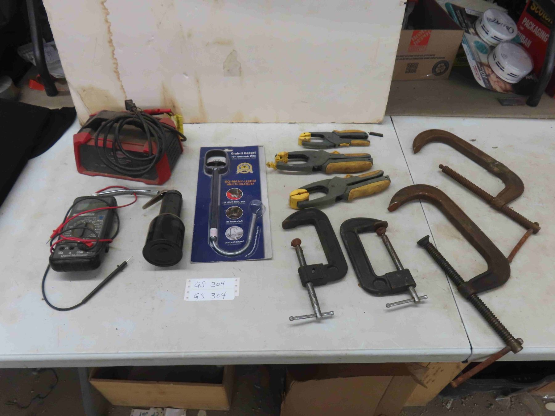 Battery Charger, Oil Can, Multimeter + 7 Clamps