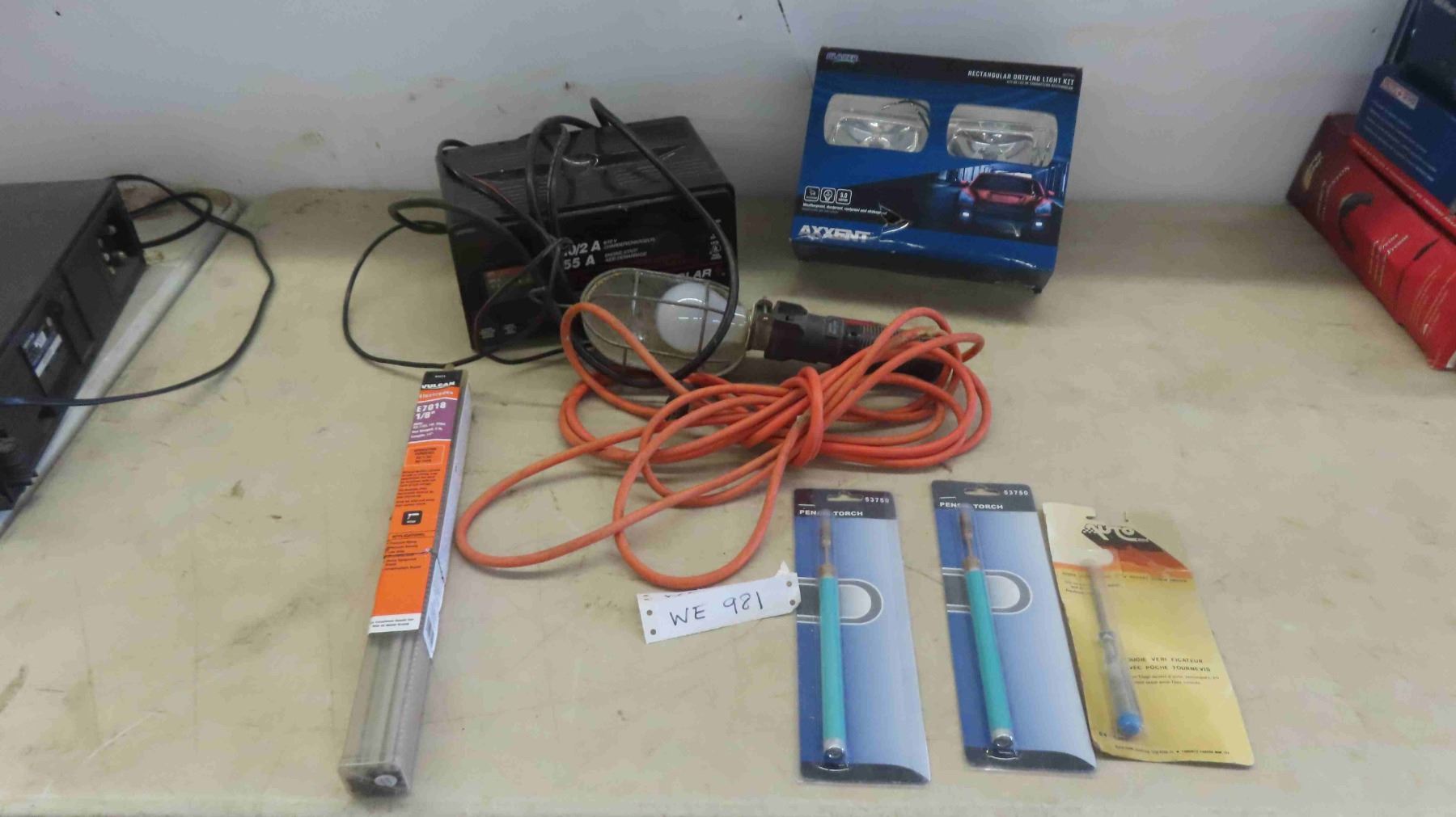 Battery Charger , Trouble Light , Electrodes , New Driving Light Kit , Pencil Torch , Spark Plug Tester & More