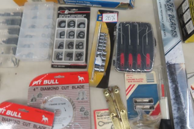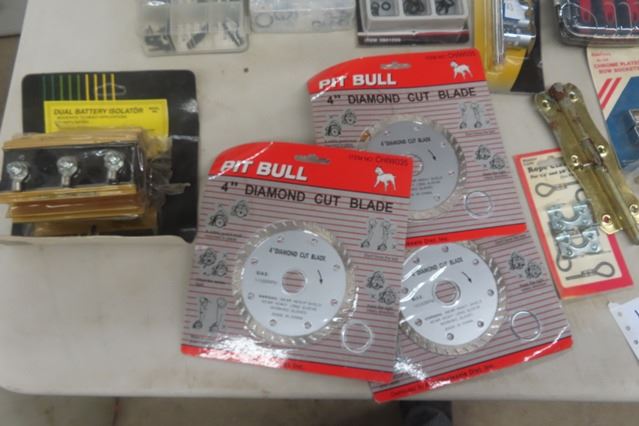 Battery Isolator, Cut Off Blades, O Rings, Hardware, Ear Protection, Respirator - Most New in Packag