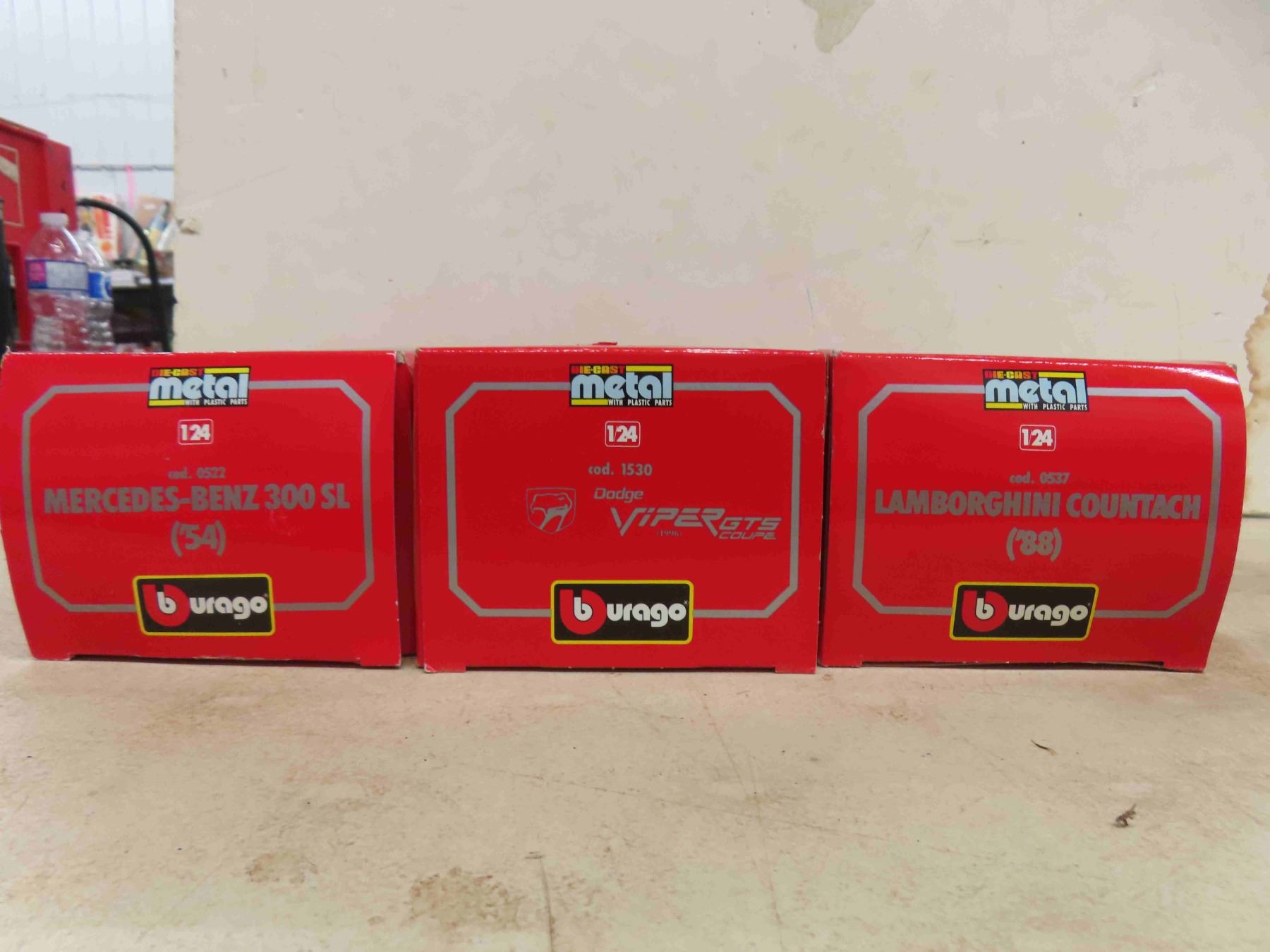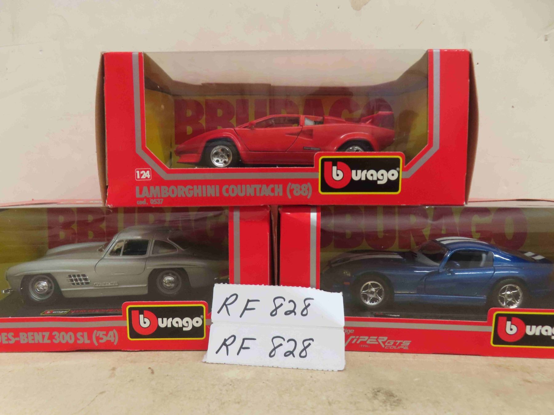 Bburago 1/24th Mercedes, Lamborghini, Viper, 1988 Lamborghini Countach, 1954 Mercedes Benz 300SL, 1996 Dodge Viper GT5 Coupe