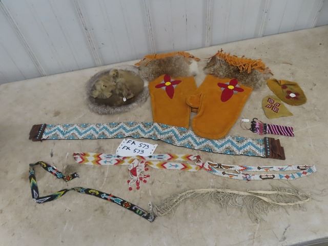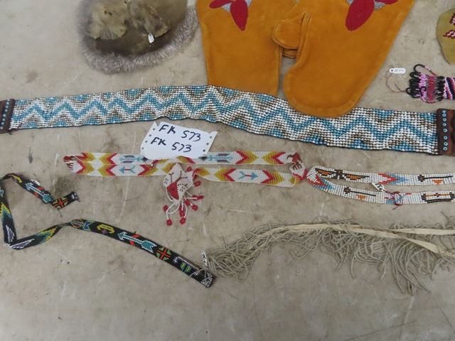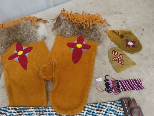 Beaded Leather Mitts, Beaded Jewlery, Belt, Full Display