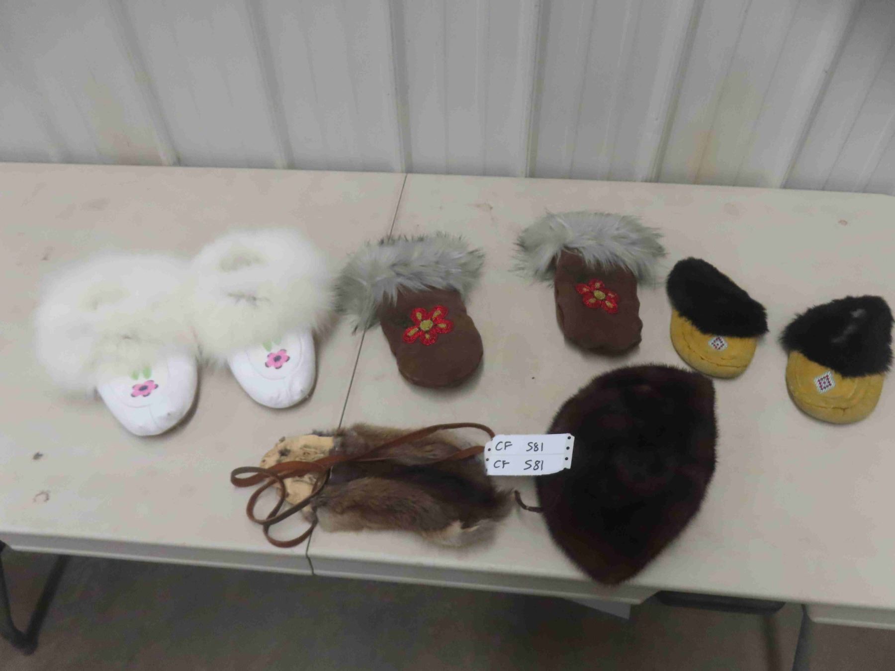 Beaded Leather Slippers & Gauntlets, Fur Hat & More