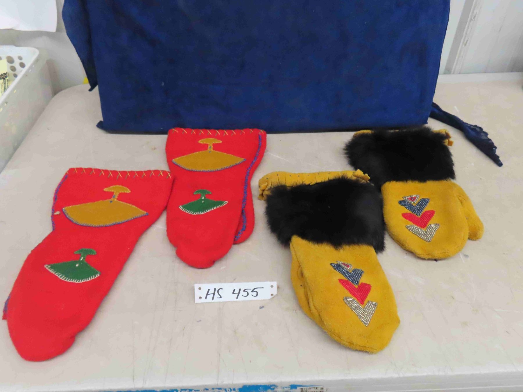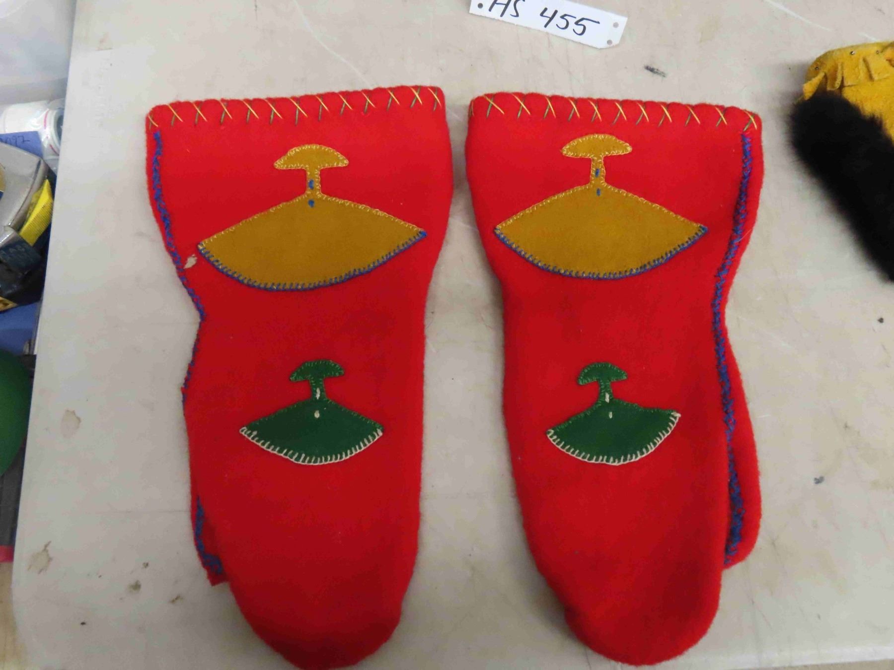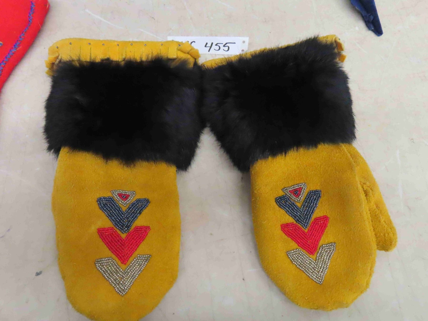 Beaded Suede with Fur Mukluk Style Mittens + Fabric Style with Appliques -