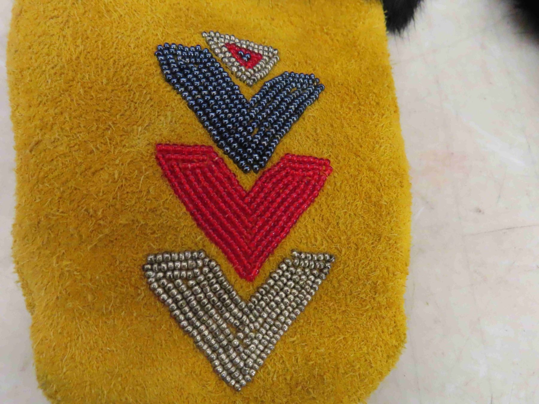 Beaded Suede with Fur Mukluk Style Mittens + Fabric Style with Appliques - Sz Ladies Sm