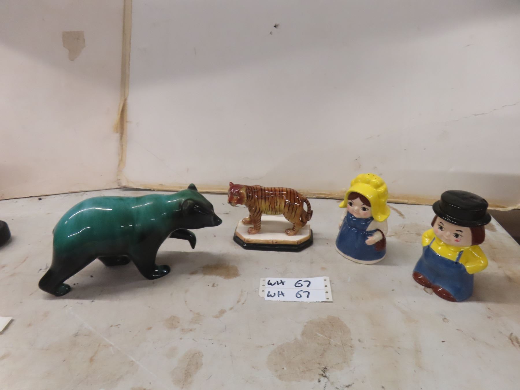 Bear, Tiger Figurine & Amish Couple Salt + Pepper Shakers
