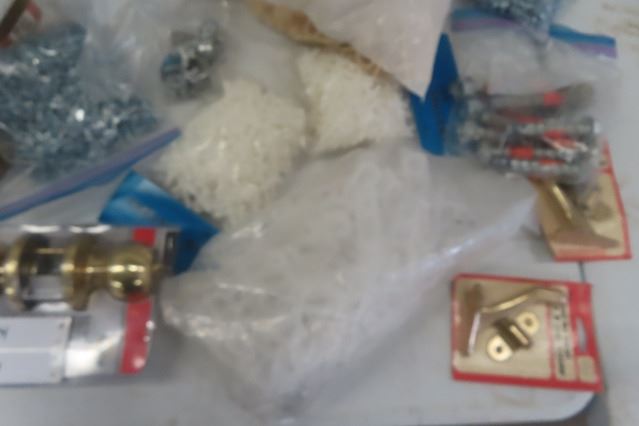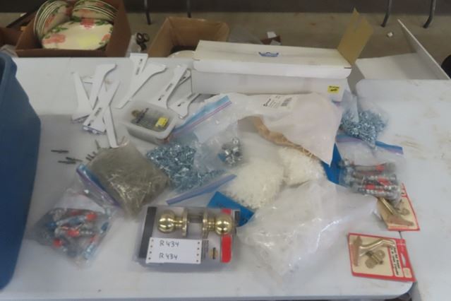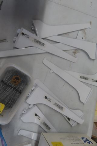 Beass Door Handle, Screws, Tile Spacers, Shelf Brackets, + Assorted Hardware