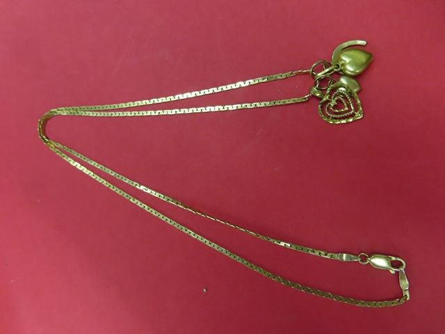 Beautiful 14KT Gold Chain & 4- 10 KT Gold Charms Total Weight = 8.77 Grams