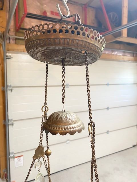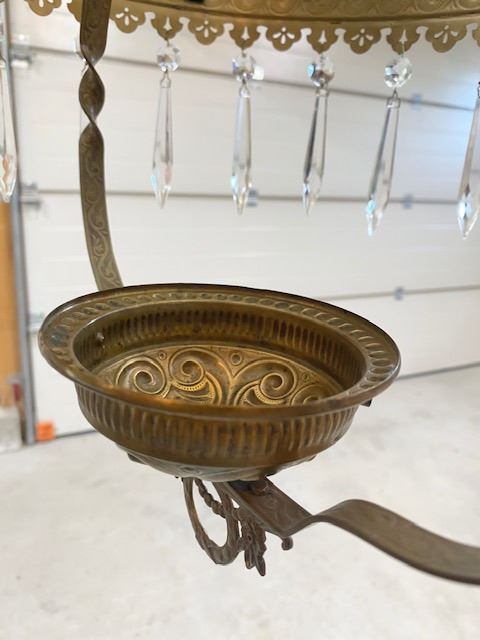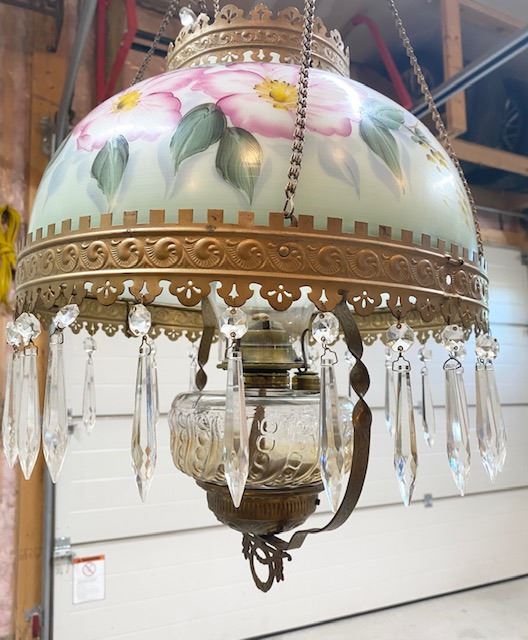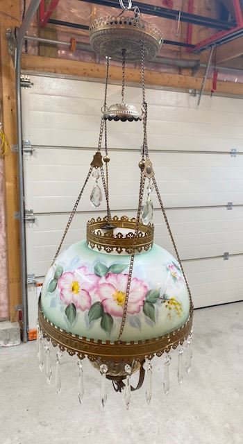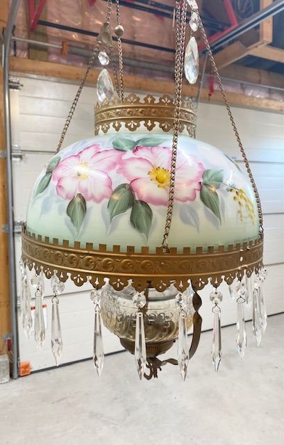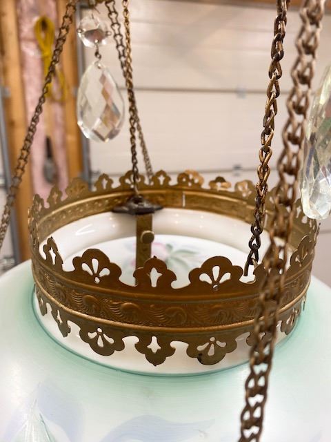Beautiful Hanging Lamp - Handpainted Shade w Prisms