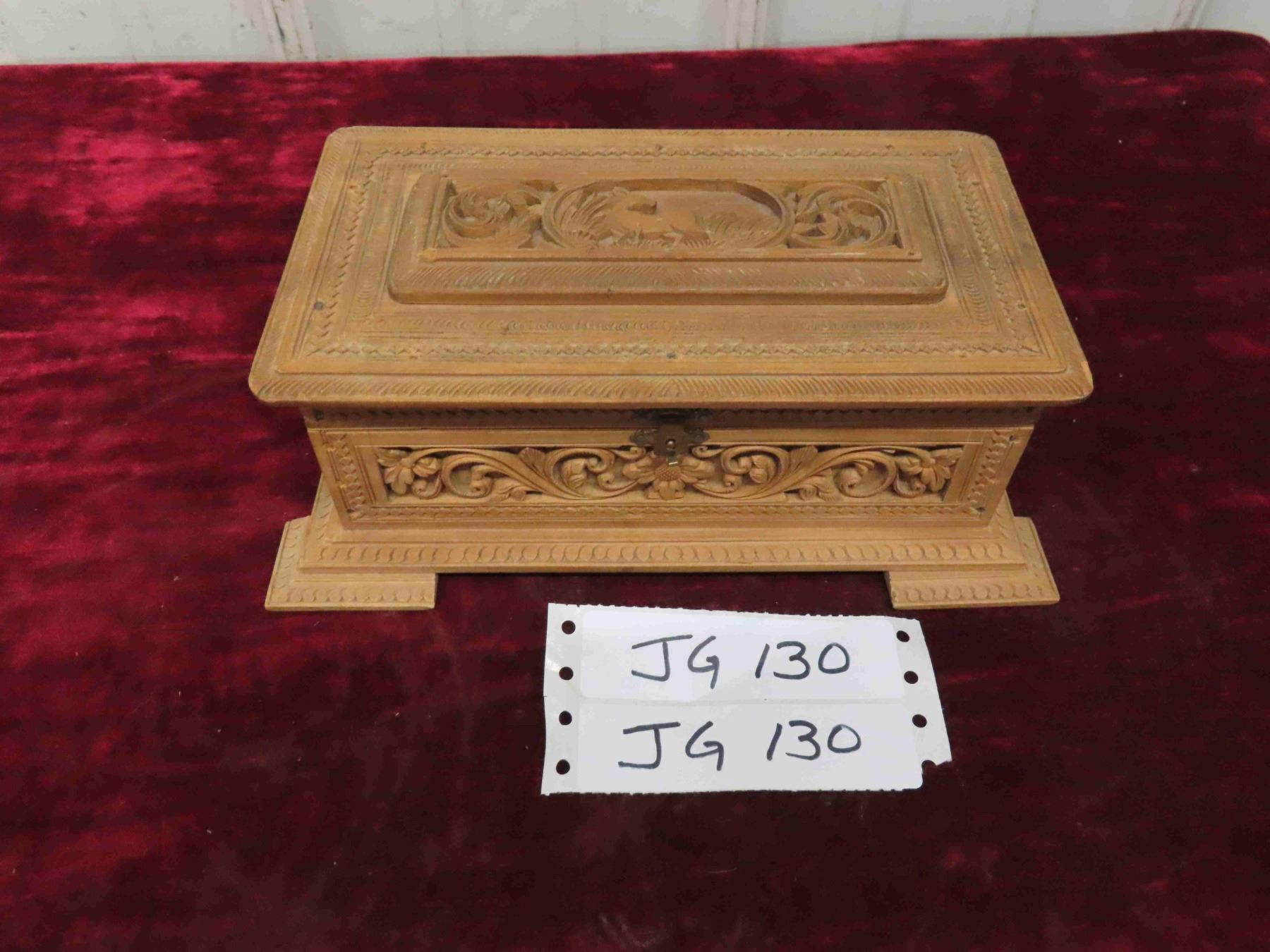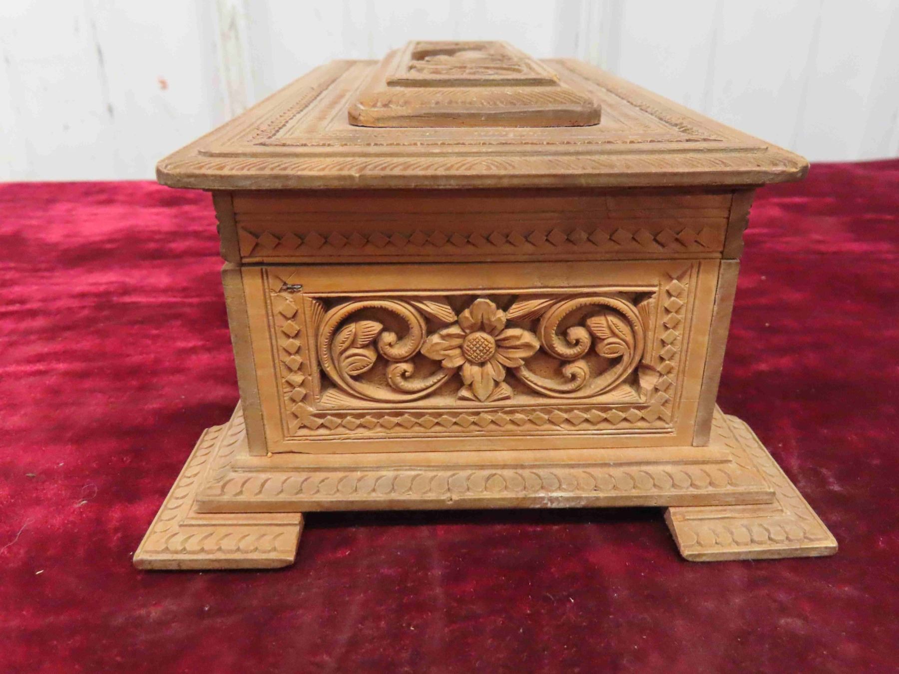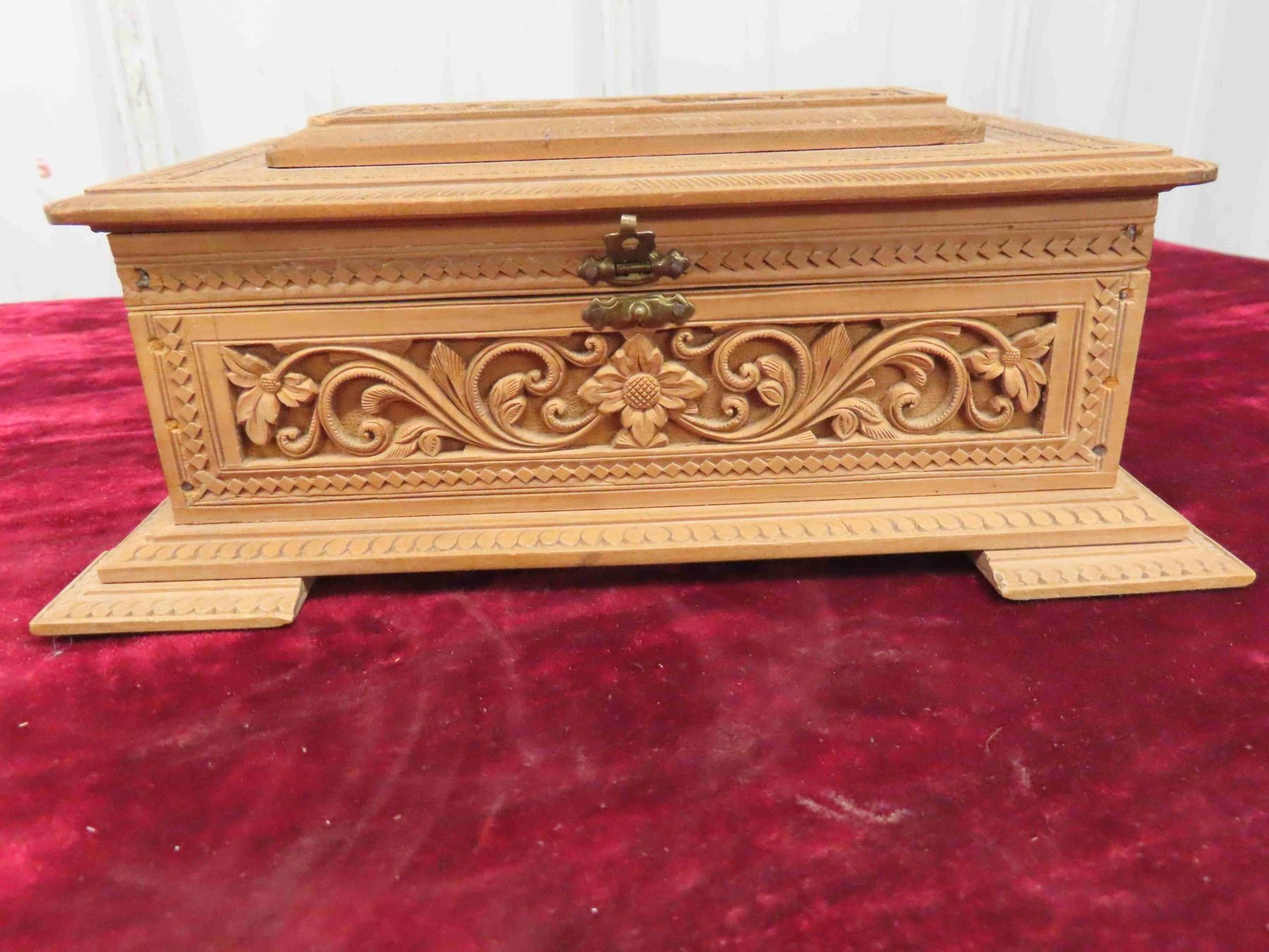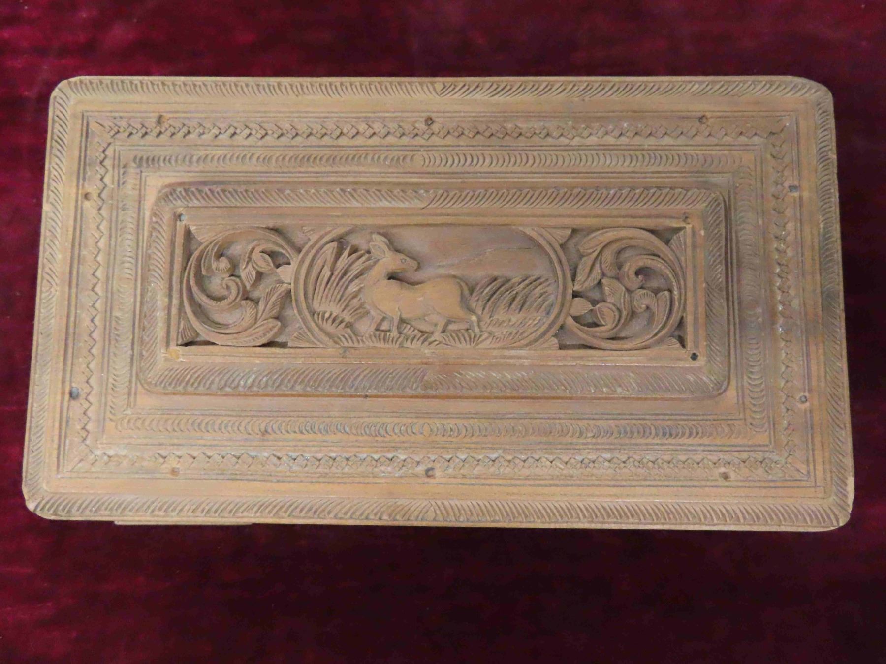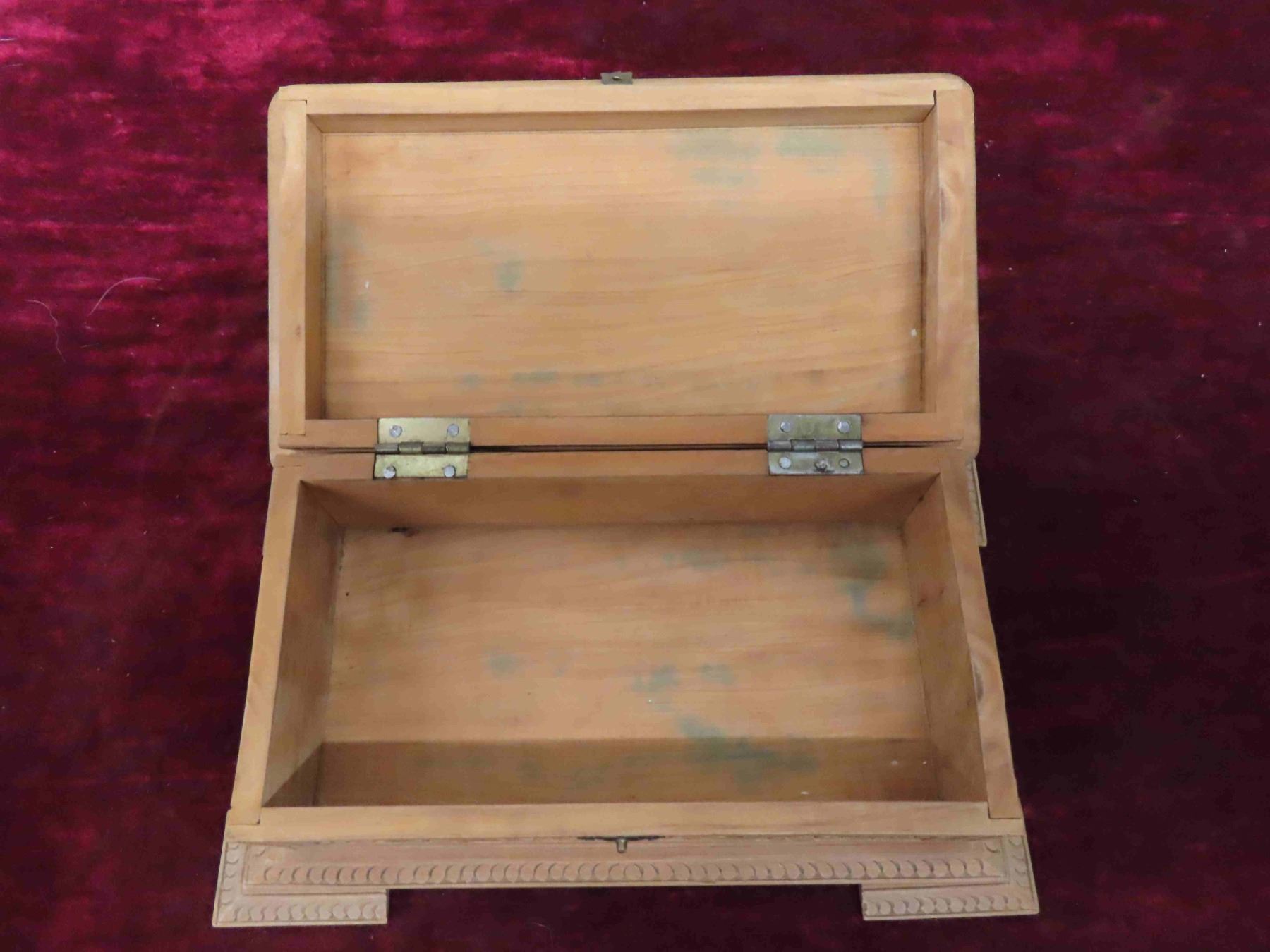 Beautiful Vintage Carved Wooden Box with Metal Clasp 9'' x 5.5''