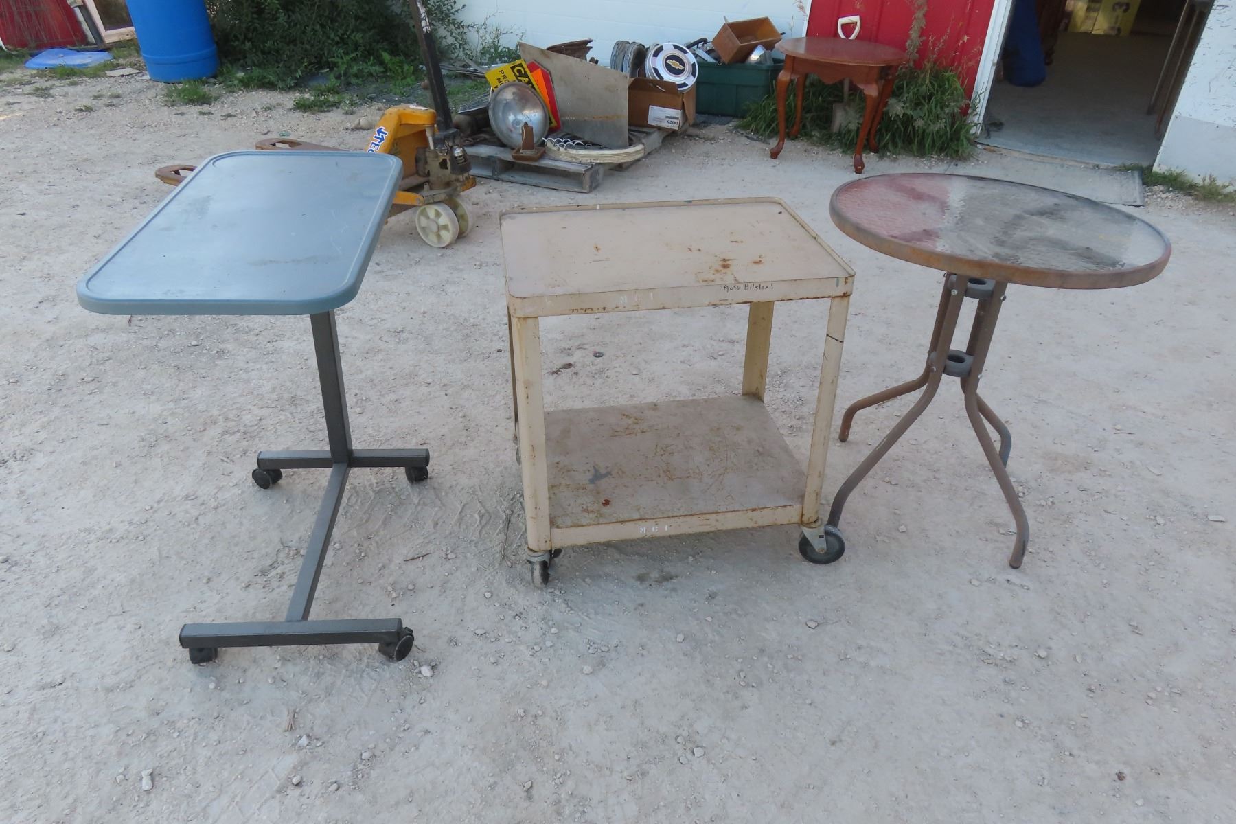 Bed Side Rolling Table, Bristo Glass top Table and Rolling 2 Tier Cart