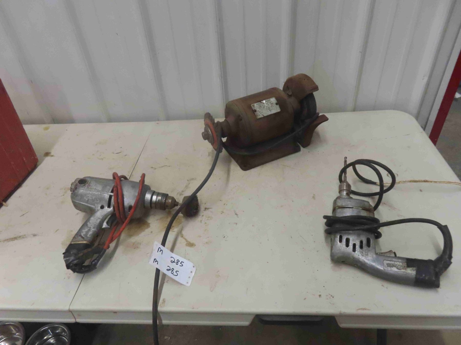 Bench Grinder, 2 Power Drills 1/2'' & 3/8'' , Grind Stones &