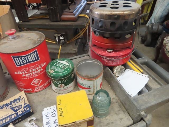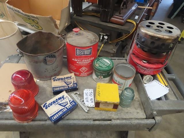 Best Buy Antifreeze Tin , North Strar Tin , Coleman Heater, Light Glass, Carb Kits, 2 Firestone Fend