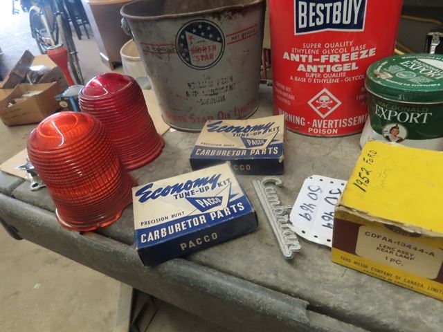 Best Buy Antifreeze Tin , North Strar Tin , Coleman Heater, Light Glass, Carb Kits, 2 Firestone Fender