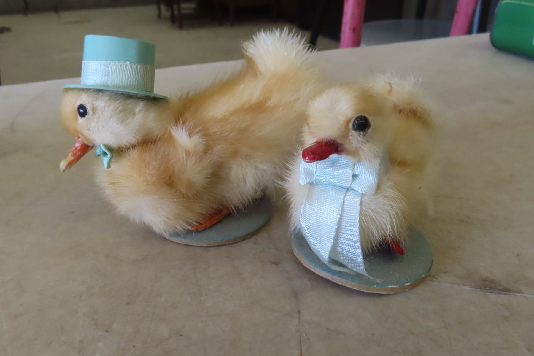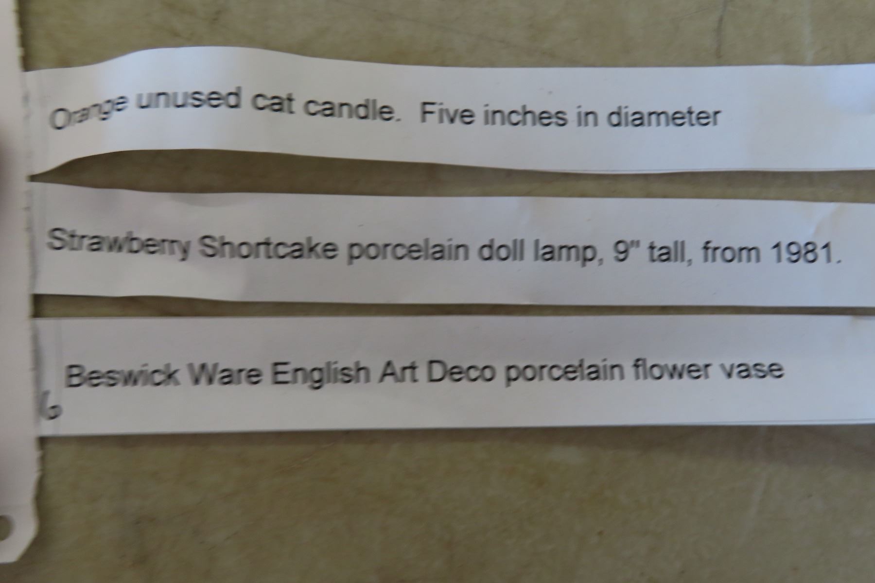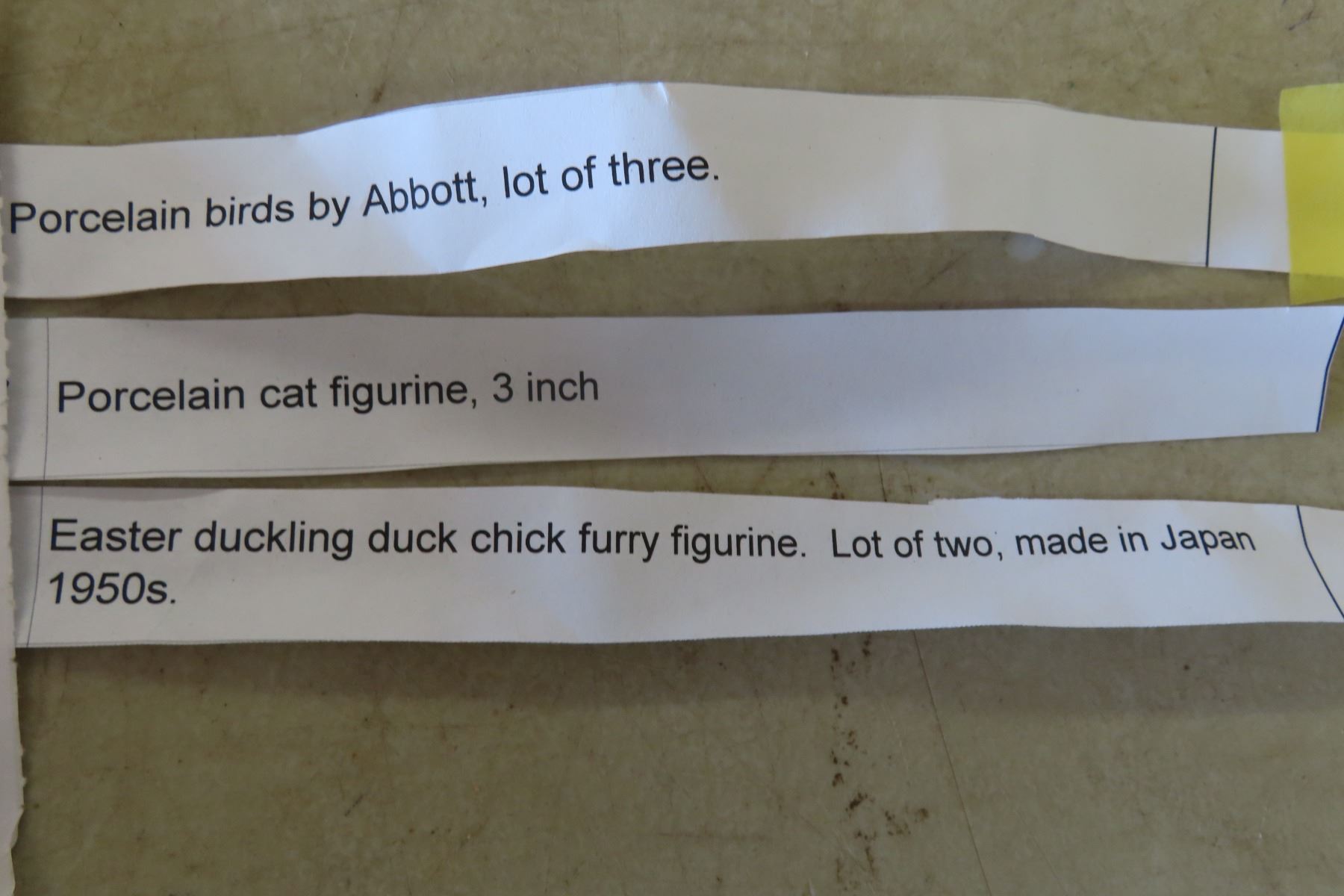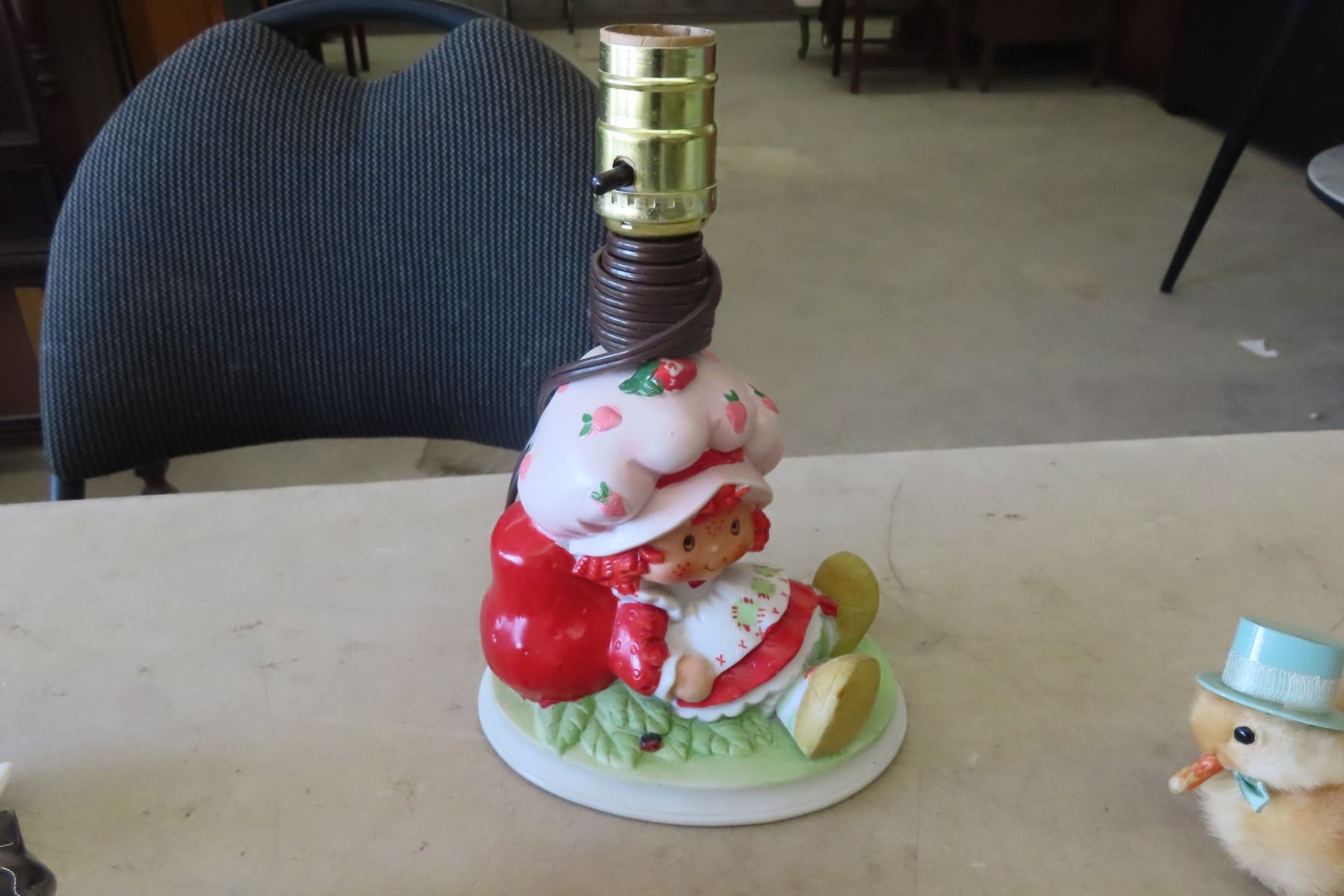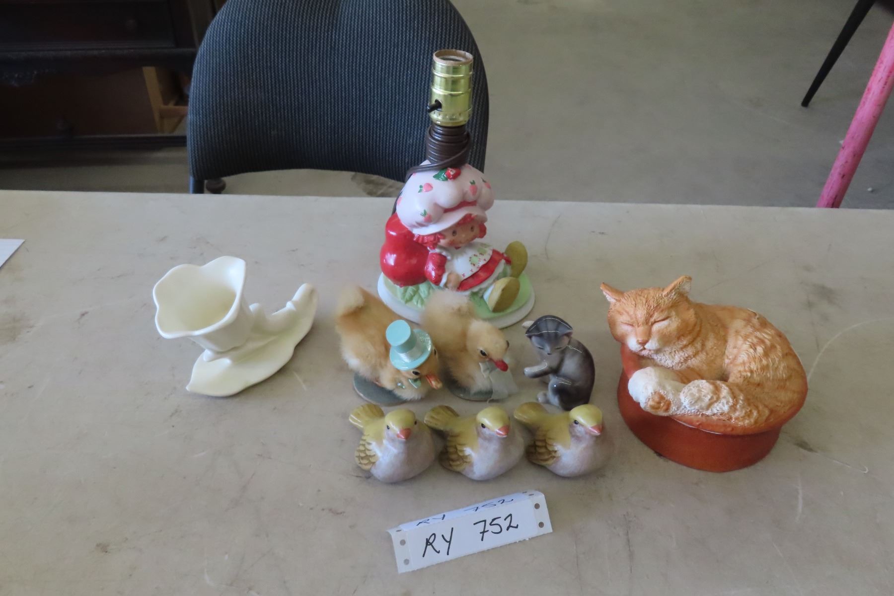 Beswick Ware Vase, 3 Porcelain Binds, Cat Figure, Strawberry Shortcake Doll Lamp, 2 Easter Ducklings 1950's