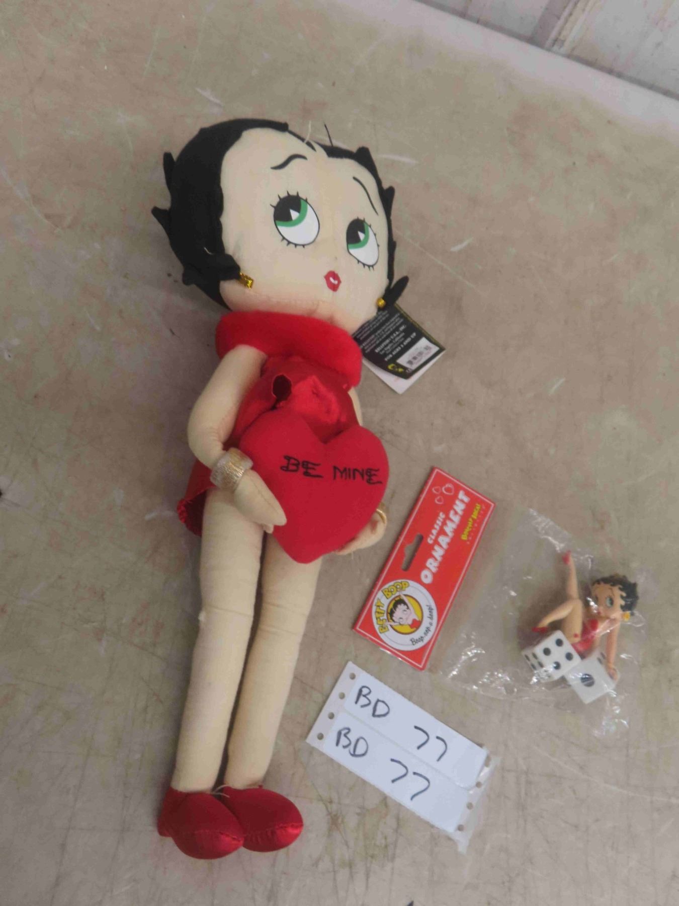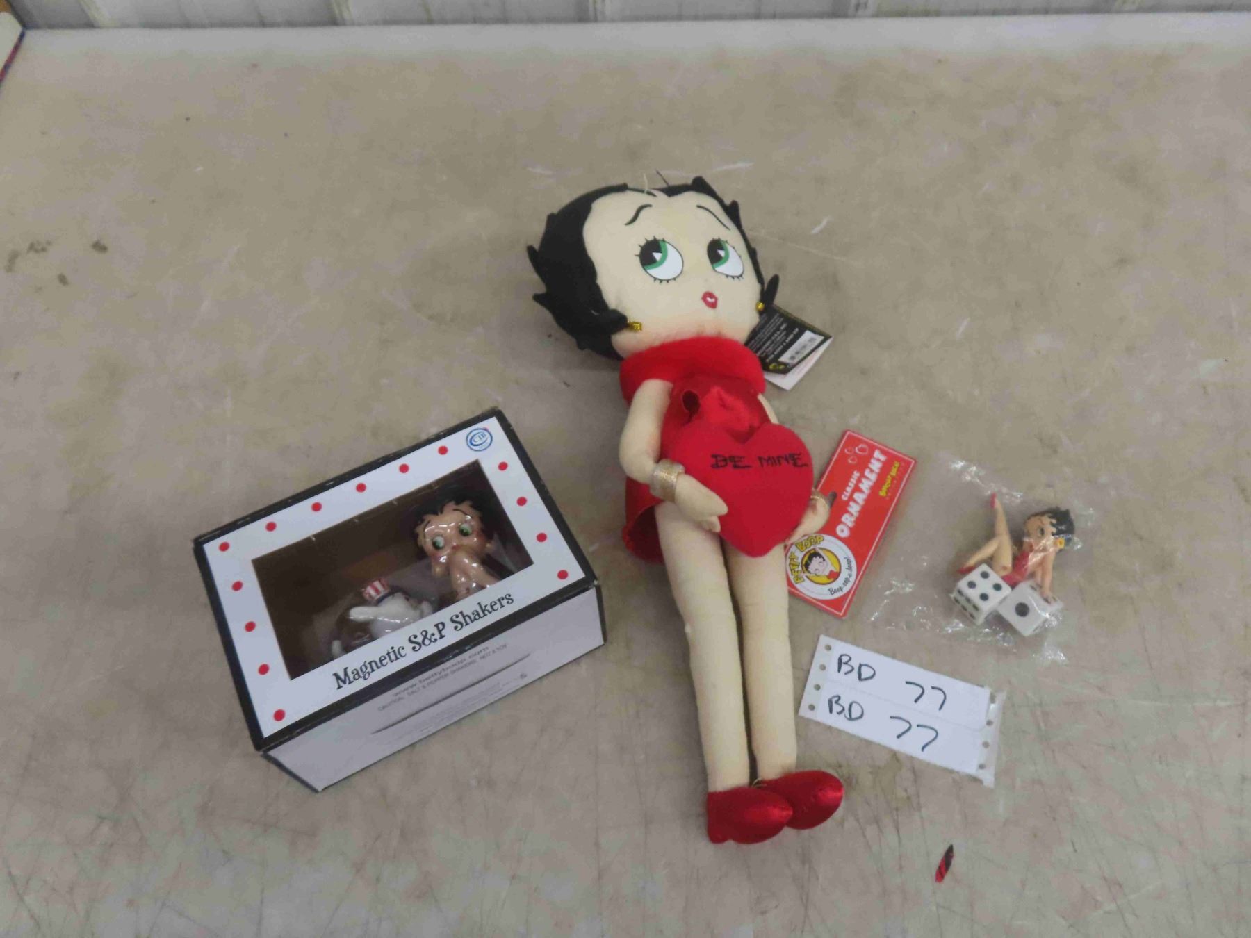 Betty Boop Lot: New Plush with Tag, Salt/Pepper Shakers in Box & a Sealed Ornament